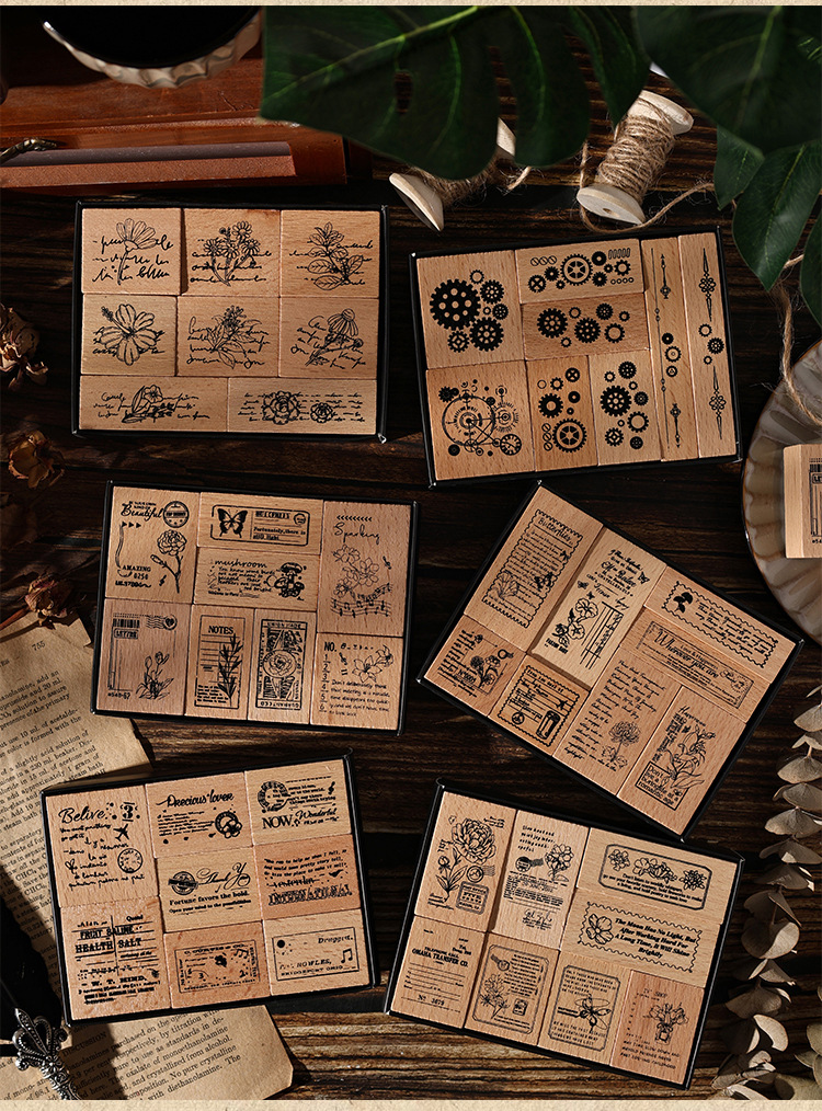 황혼의 마크 시리즈 복고풍 꽃 테마 너도밤 나무 인감 크로스 보더 diy 핸드북 소재 장식 나무 인감