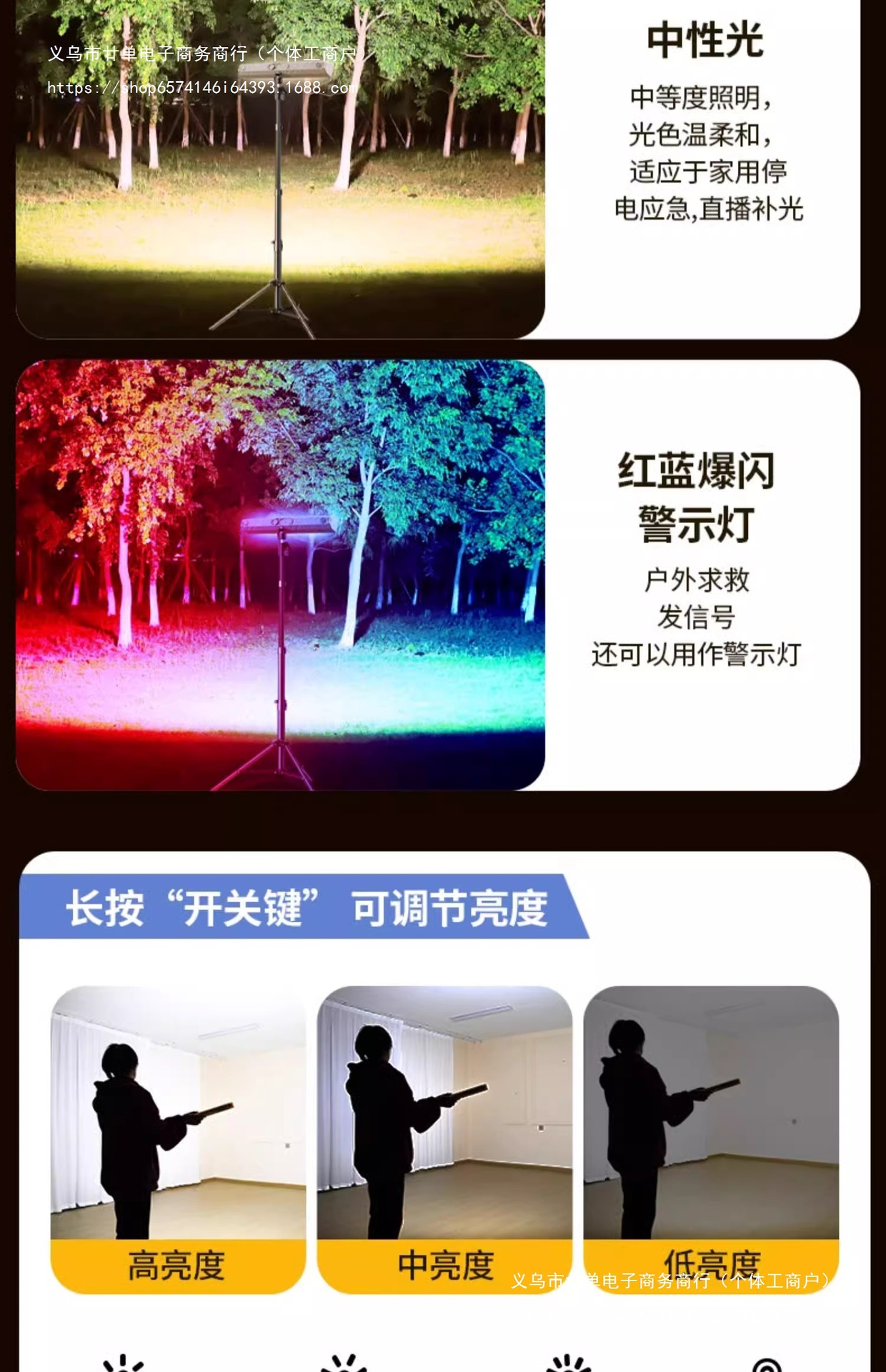 • [단일 램프 모델] 매우 밝은 20000W 유형 [배터리 수명 7-14시간] 자석 + 세 가지 밝은 색상