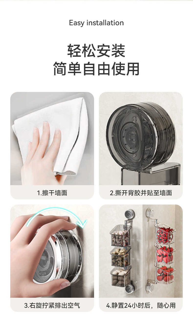 주방 양파, 생강, 마늘 보관함, 흡입컵형 보관함, 생강 마늘 조미료 보관 바구니, 벽걸이 바구니
