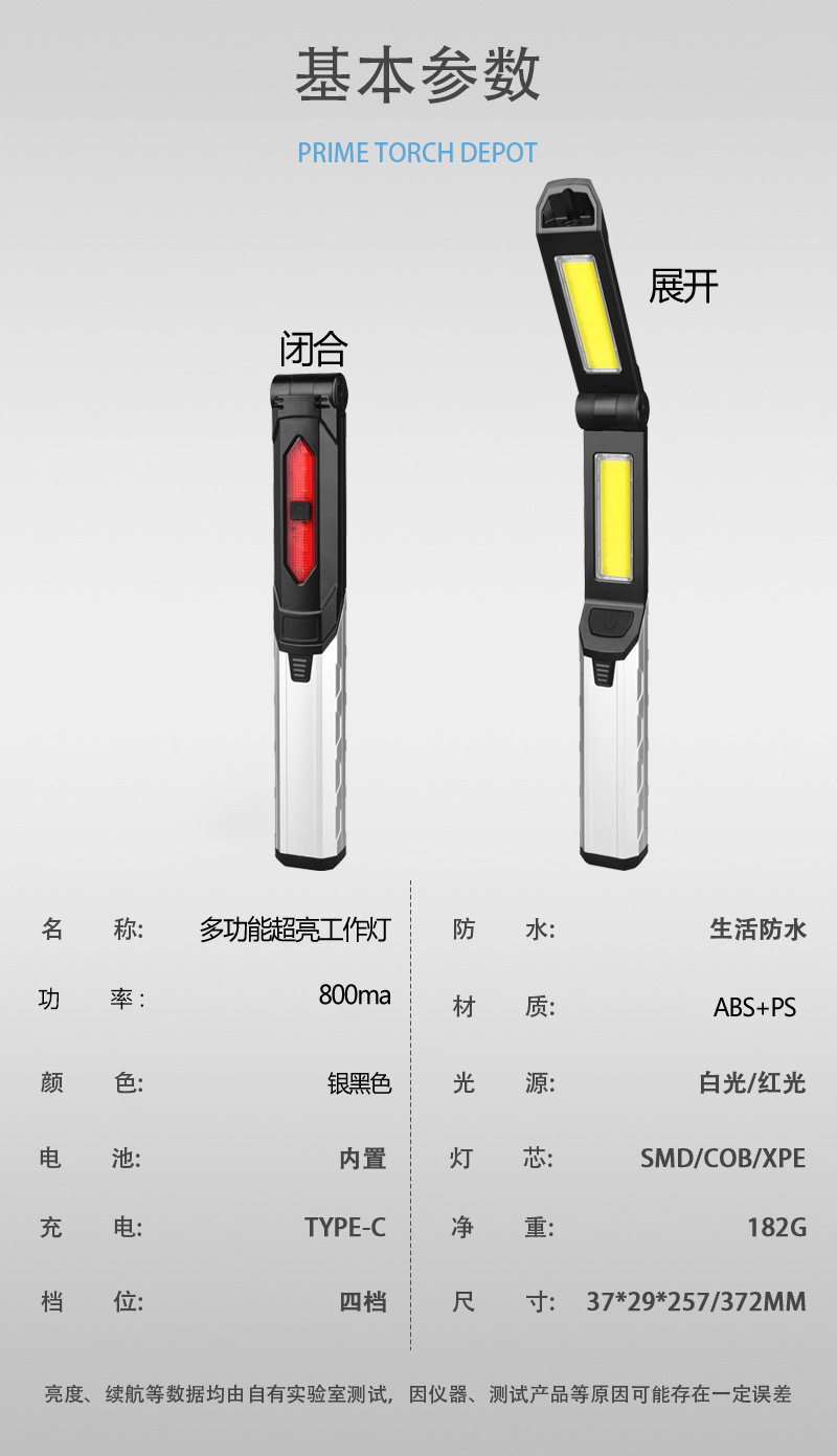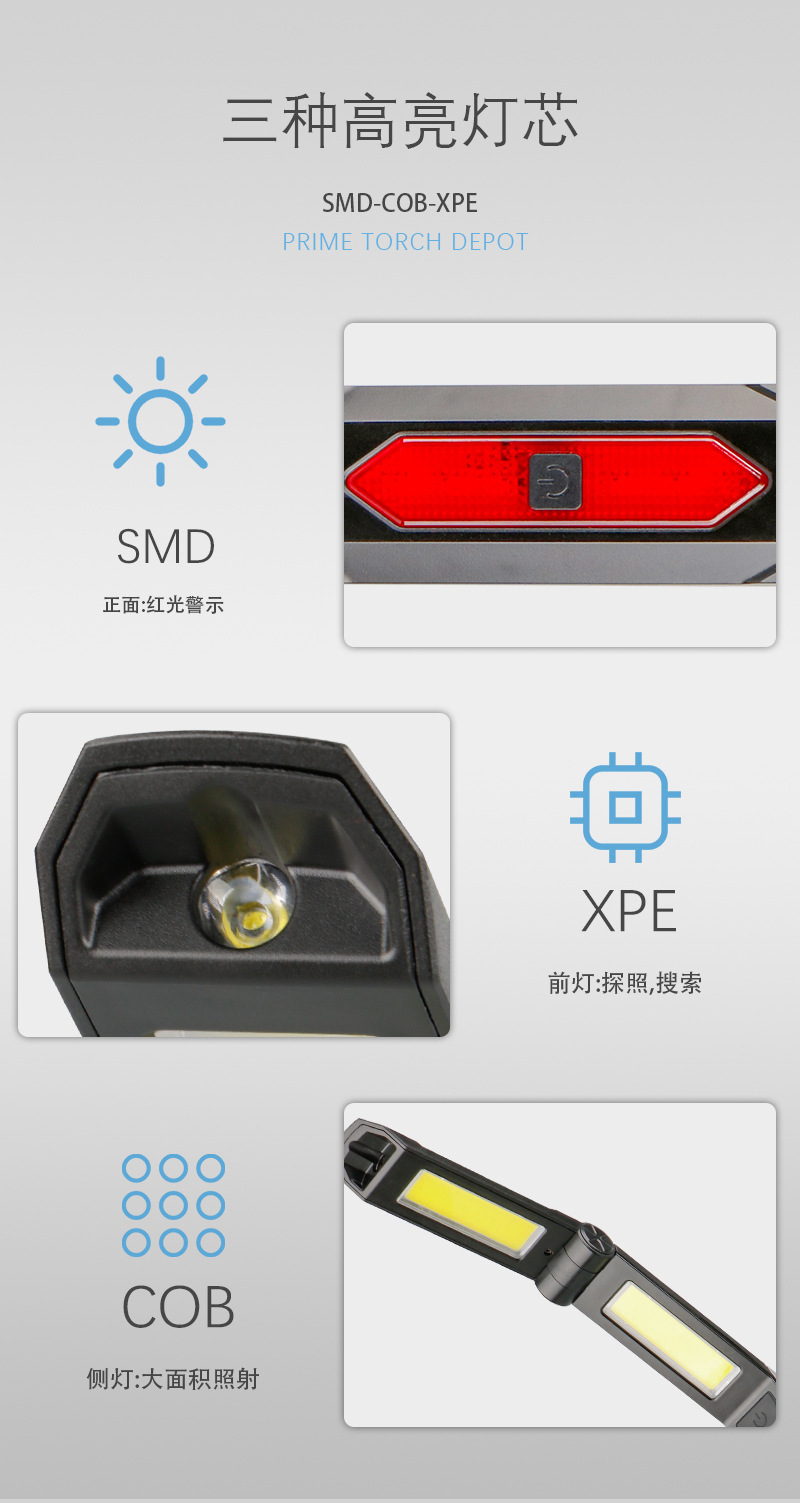 6.放电时间:前灯XPE6小时,COB1/5小时,COB1COB2同时亮3小时