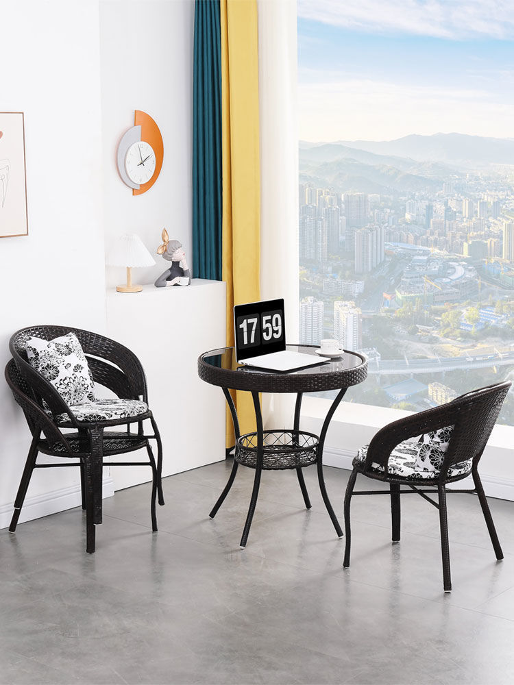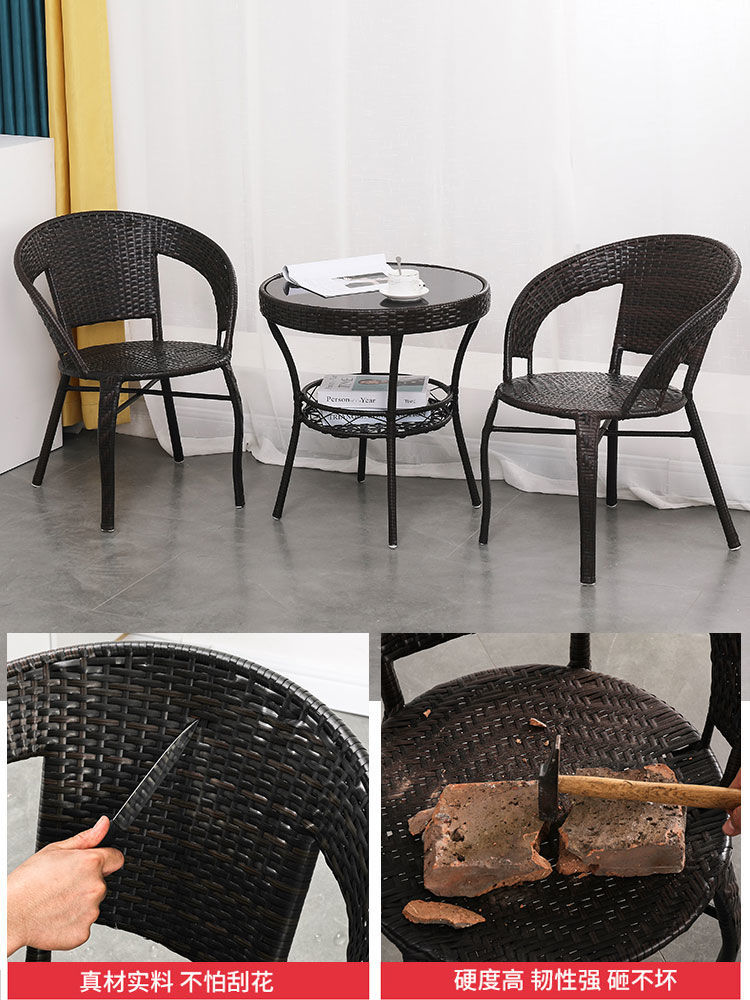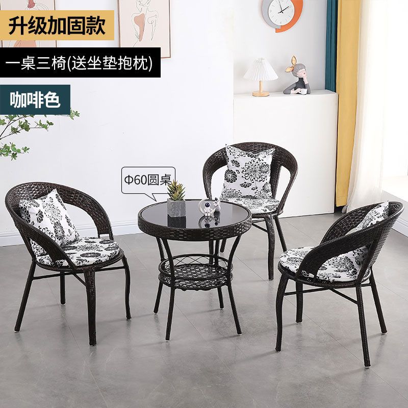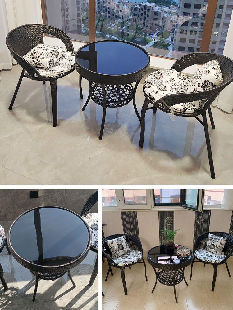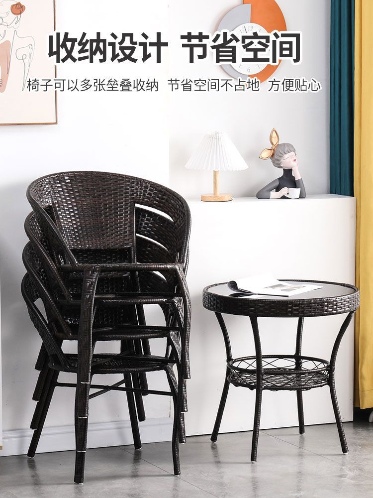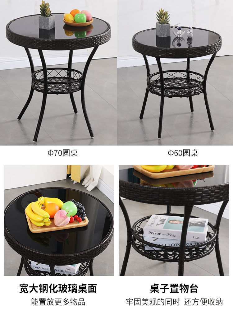 간단하고 현대적인 발코니 등나무 테이블과 의자 조합 침실 야외 안뜰 정원 작은 원형 식탁 두꺼운 작은 커피 테이블스토어 가기