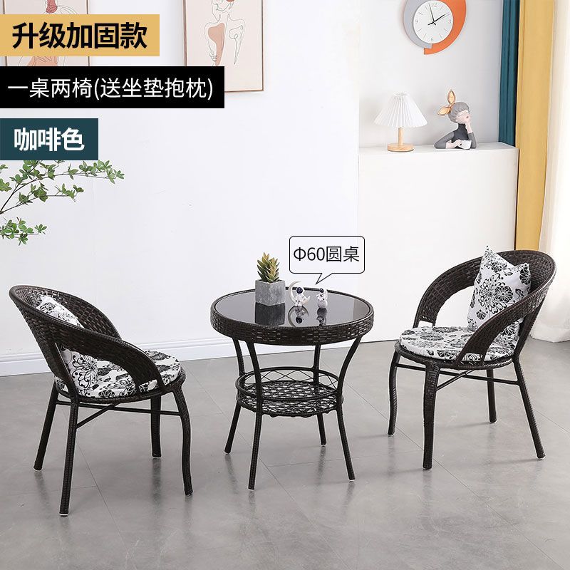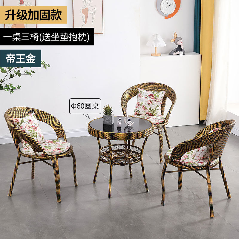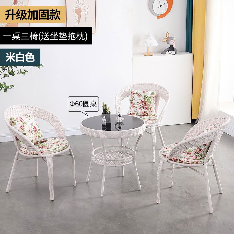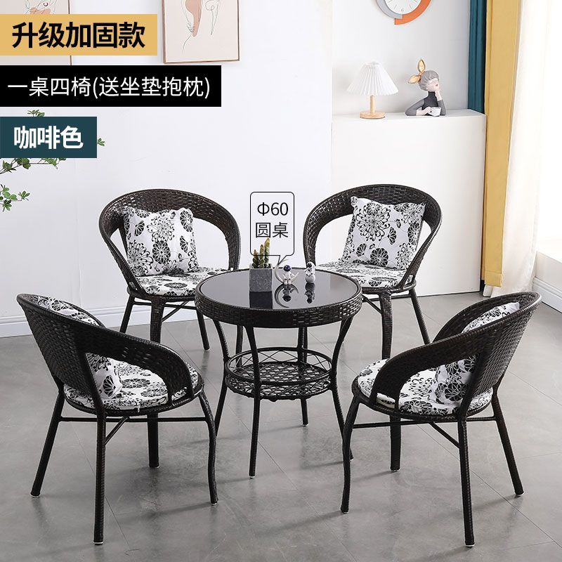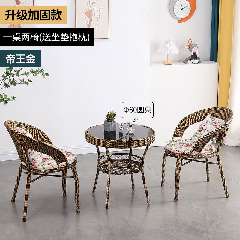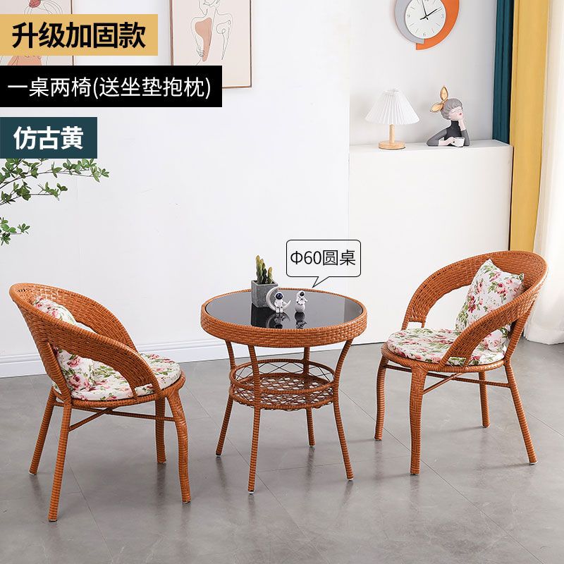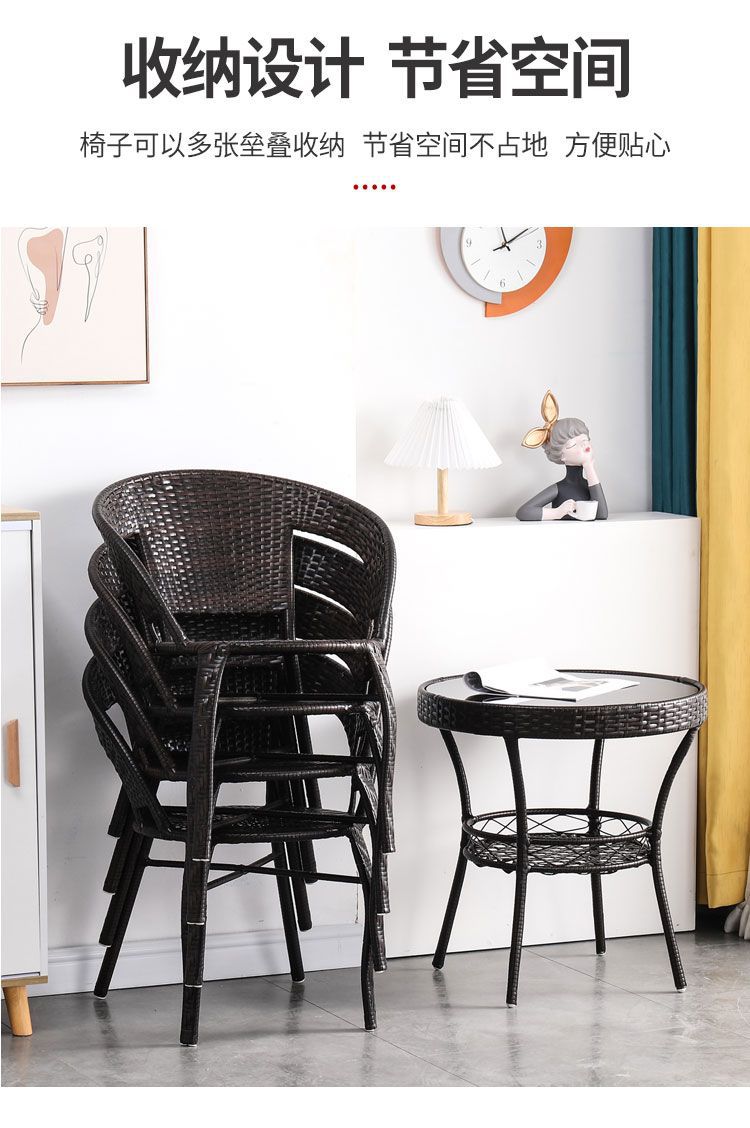 간단하고 현대적인 발코니 등나무 테이블과 의자 조합 침실 야외 안뜰 정원 작은 원형 식탁 두꺼운 작은 커피 테이블스토어 가기