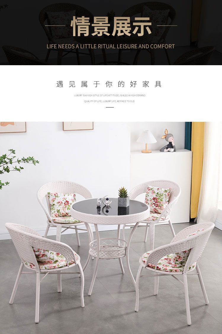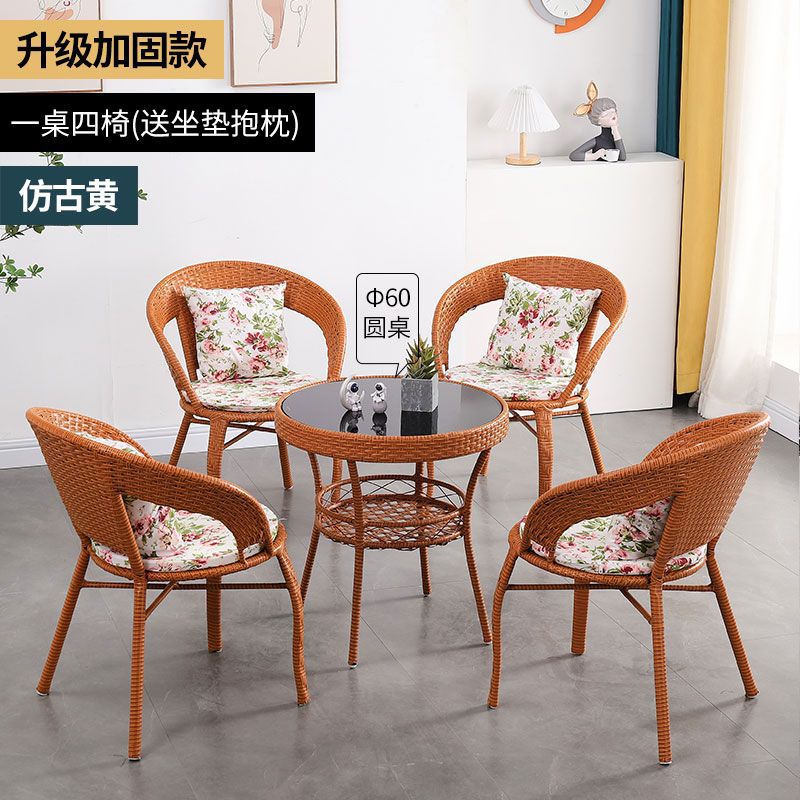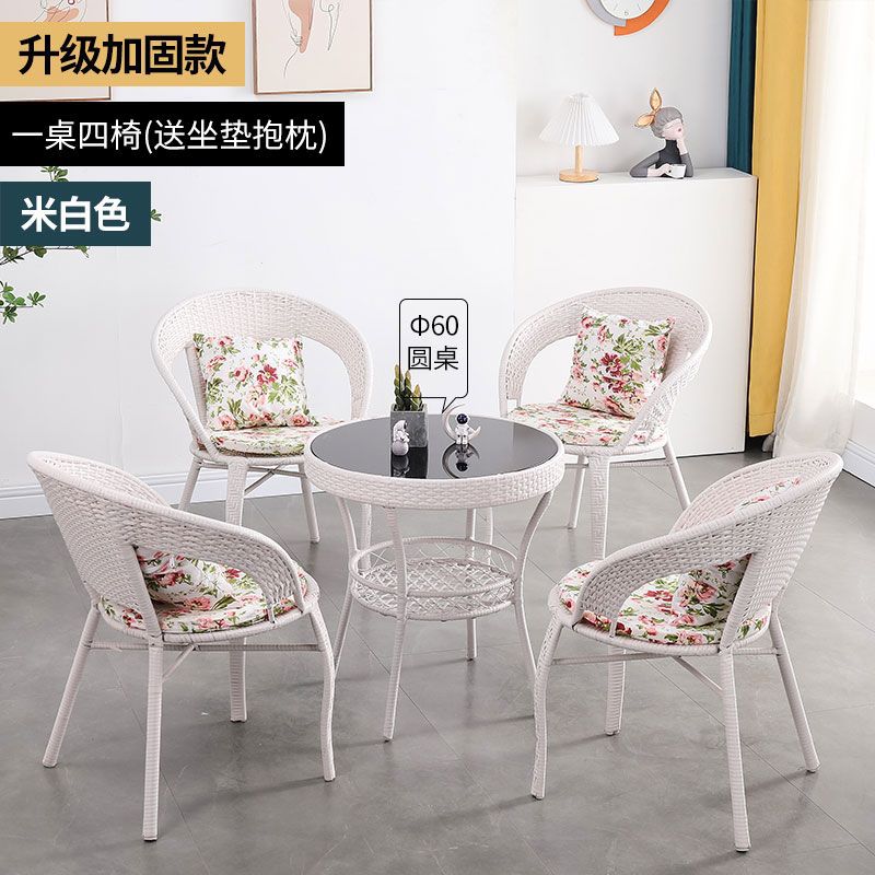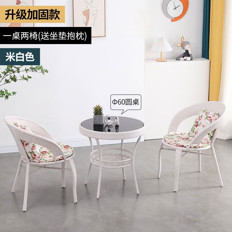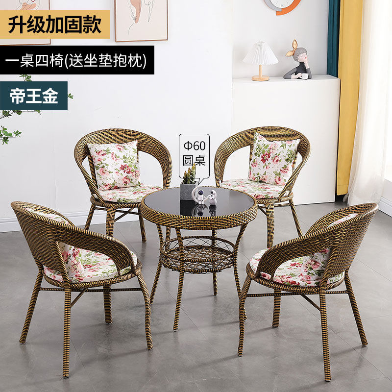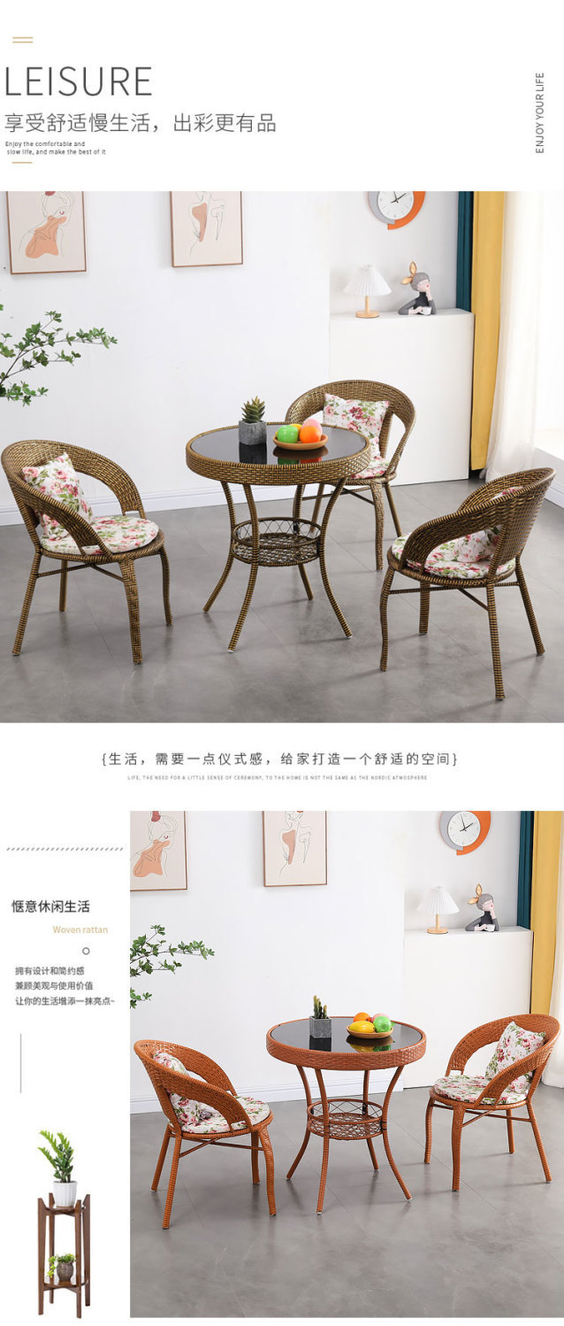 간단하고 현대적인 발코니 등나무 테이블과 의자 조합 침실 야외 안뜰 정원 작은 원형 식탁 두꺼운 작은 커피 테이블스토어 가기