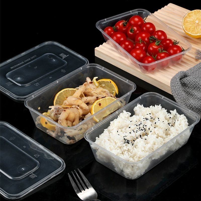 일회용 도시락 상자 식품 등급 두꺼운 사각형 포장 상자 전자 레인지 사용 가능 플라스틱 도시락 상자 테이크 아웃 패스트 푸드 상업용