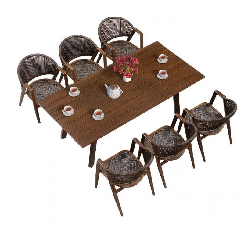 • 6 [업그레이드 의자] +1 [205x100 호두색 알루미늄 합금 롱 테이블]