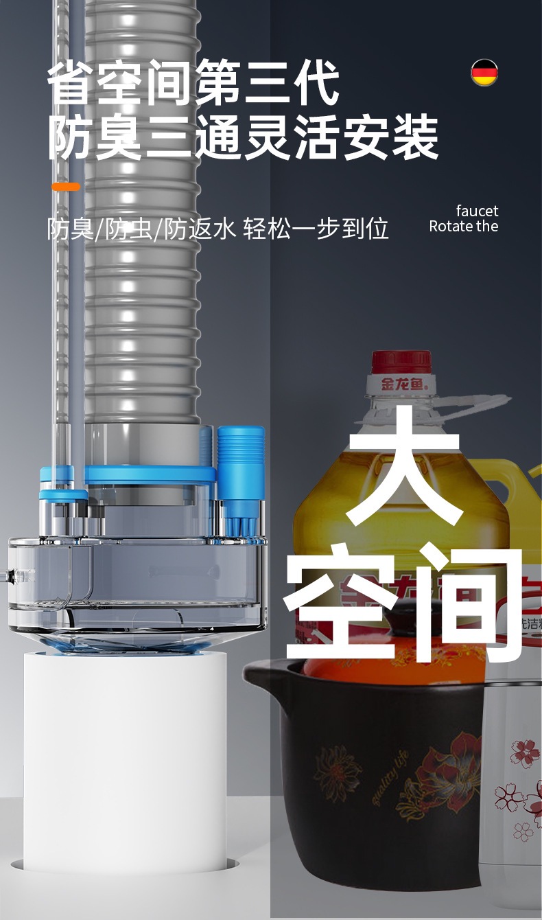 주방 하수구 트리플 배수구 식기 세척대 정수기 다기능 커넥터 배수구 냄새 방지 유물