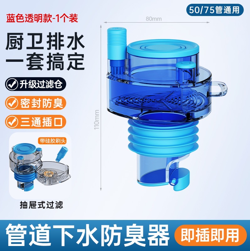 • 업그레이드된 3방향 냄새방지 플러그 [청색투명] (1팩)