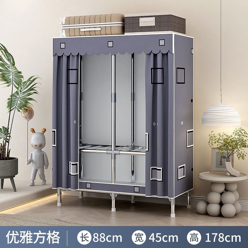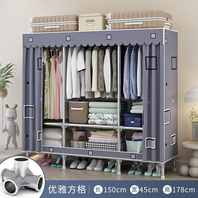 [활동중] 간이옷장, 가정용 침실 조립식 천옷장, 임대실 수납, 전체 철제 프레임, 두껍고 두꺼워짐