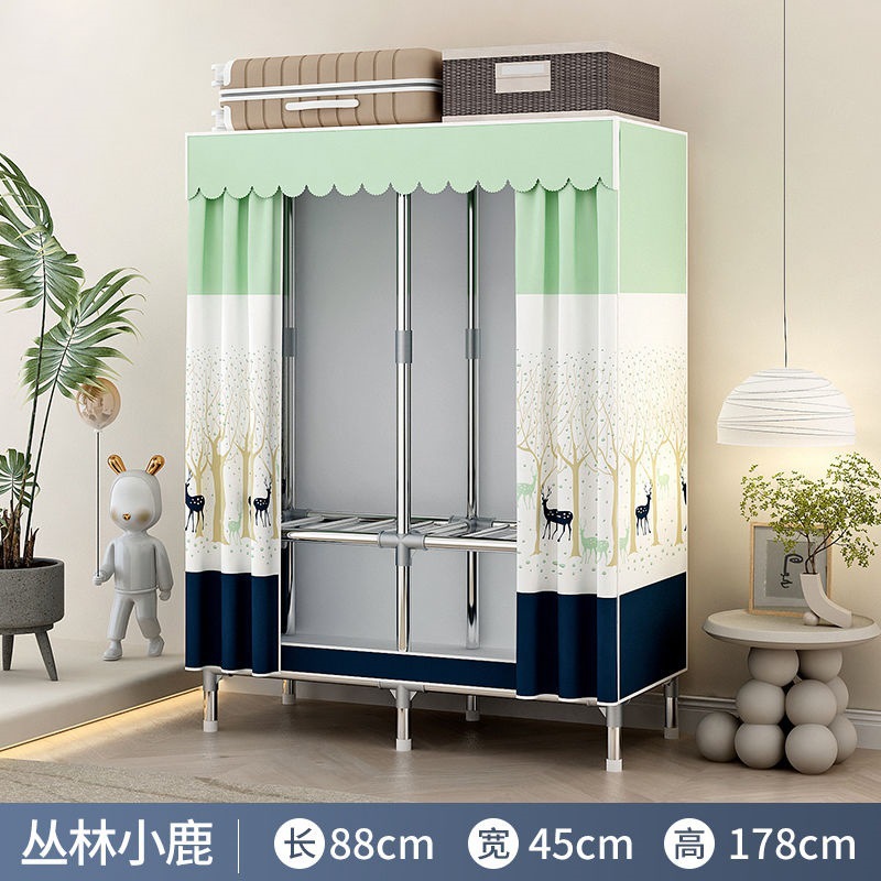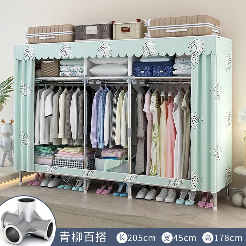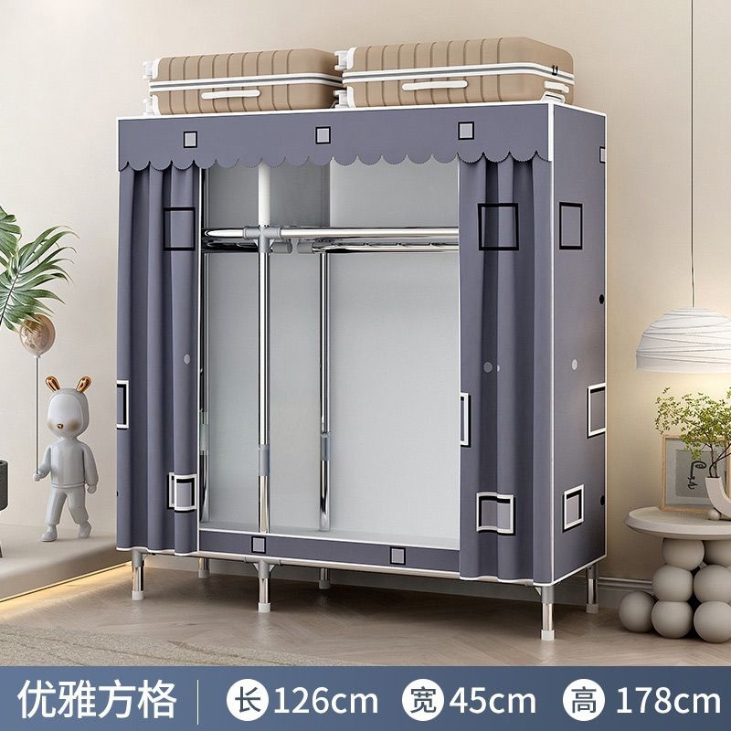[활동중] 간이옷장, 가정용 침실 조립식 천옷장, 임대실 수납, 전체 철제 프레임, 두껍고 두꺼워짐스토어 가기