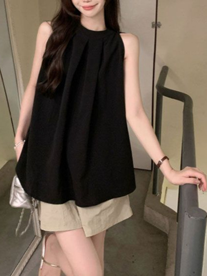 여성을위한 프렌치 홀터넥 오프 숄더 베이비돌 셔츠 봄, 여름 루즈한 민소매 조끼 티셔츠 아름답고 독특한 탑 트렌디스토어 가기