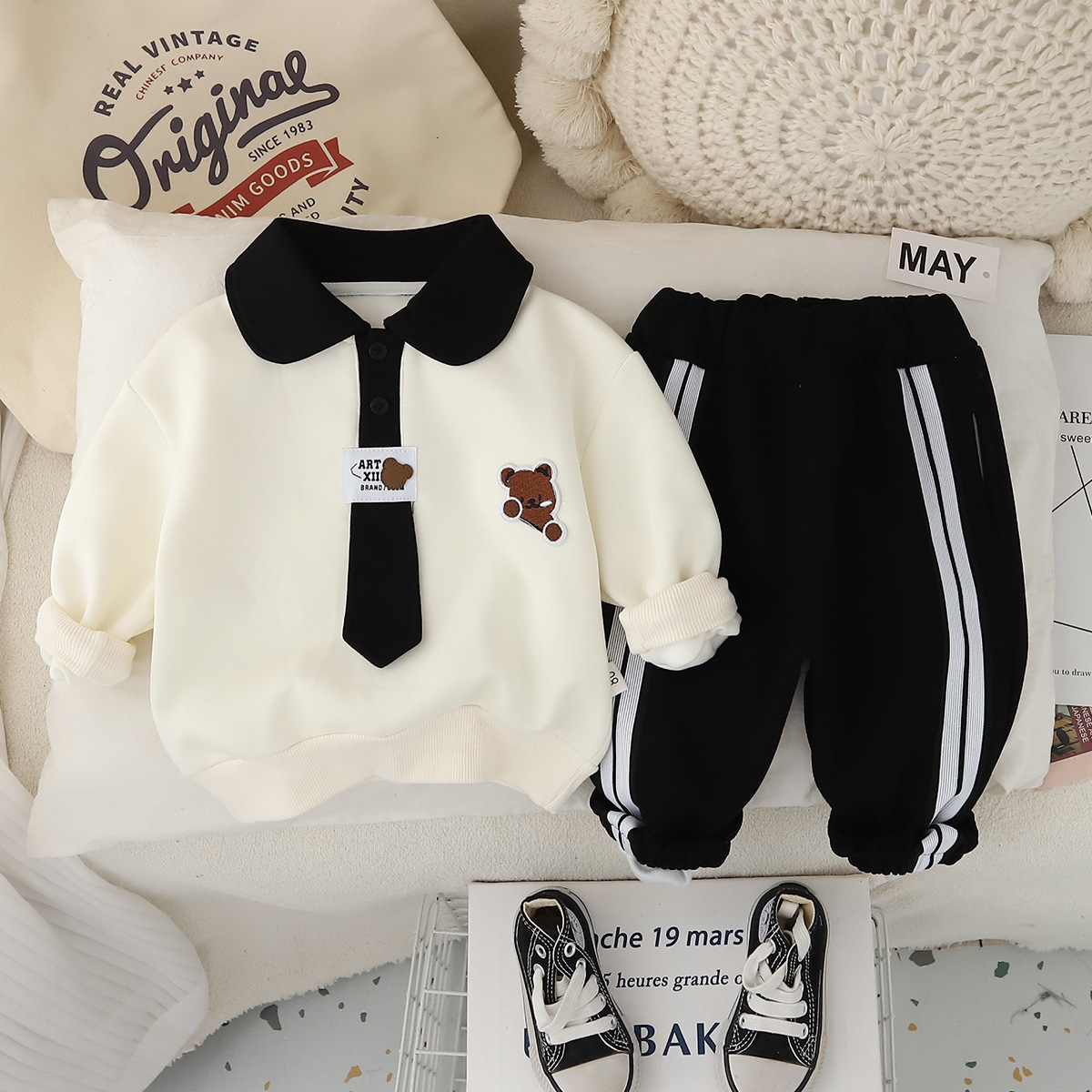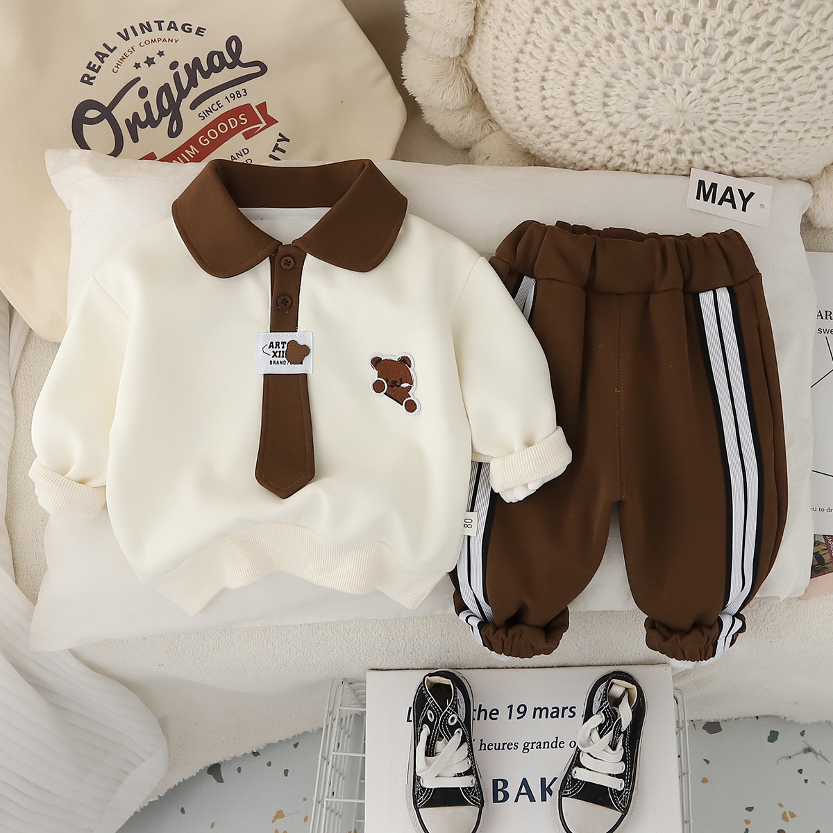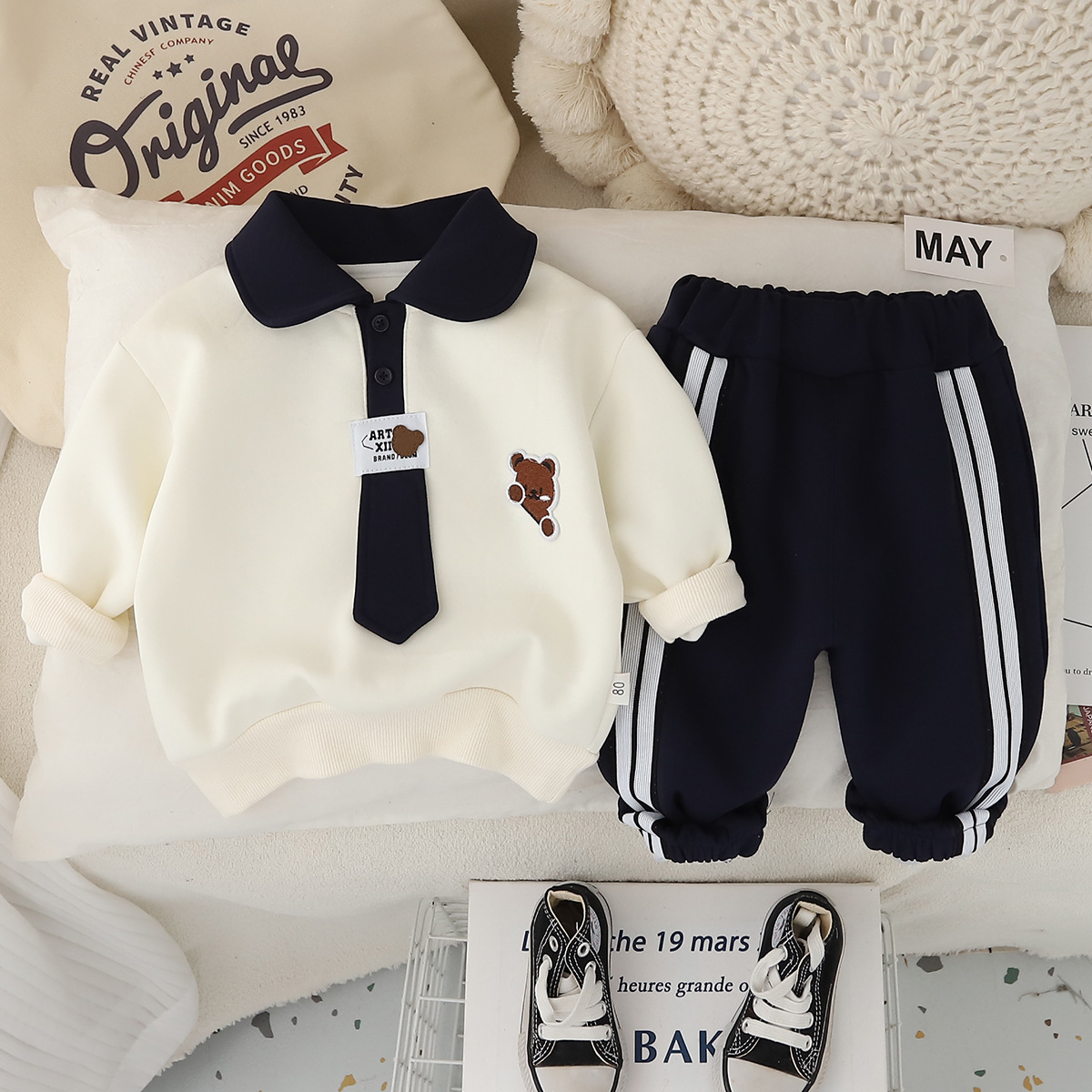 소년 정장 2025 새로운 가을 의류 어린이 폴로 셔츠 투피스 대학 스타일 아기 소년 옷 대외 무역 도매스토어 가기