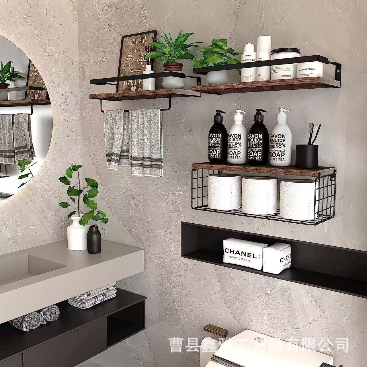 철목 결합형 벽 장식 선반, 공중에 떠 있는 칸막이 선반, 다층형 욕실 및 거실 아로마테라피 디스플레이 선반스토어 가기