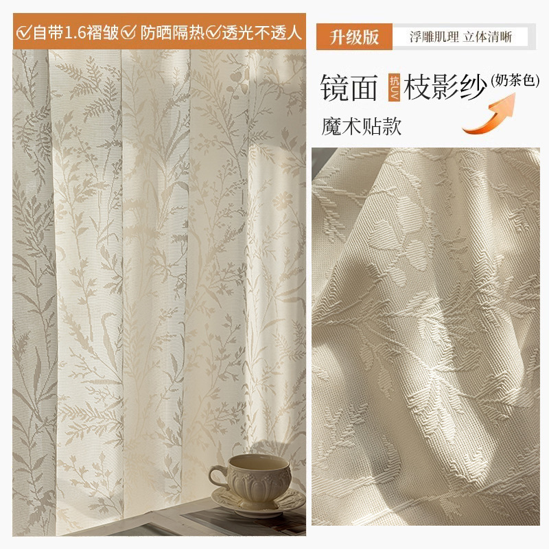 구멍을 뚫지 않고 설치할 수 있는 벨크로 거즈 커튼, 빛을 투과하지 않고 사람을 투과시키지 않는 커튼, 프렌치 스타일의 새로운 스타일의 베이 창 발코니 자외선 차단 모래스토어 가기