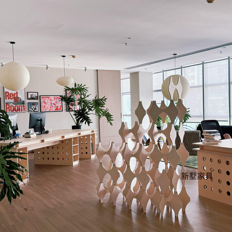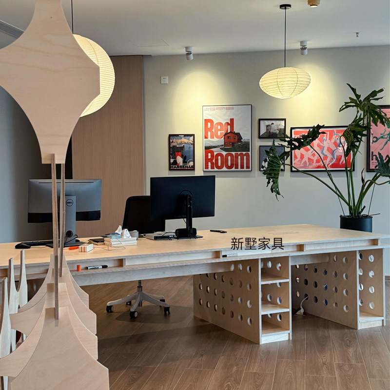 简约现代桦木海洋板大型办公室电脑桌工位桌洞洞板主管桌带主机盒
