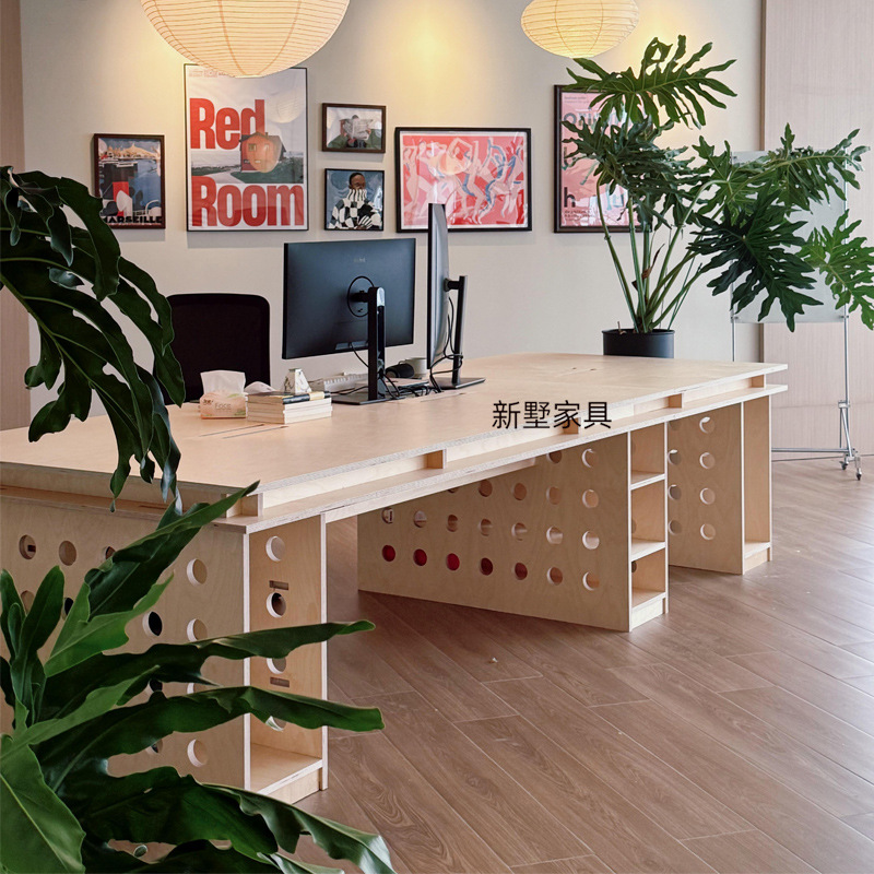 심플 모던 자작나무 마린보드 대형 사무실 컴퓨터 책상 워크스테이션 테이블 홀보드 관리자 테이블(호스트 박스 포함)