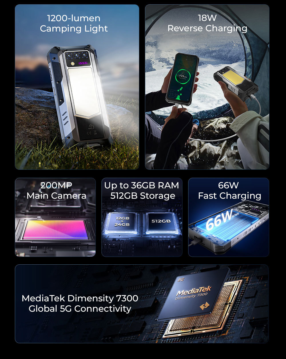 Ouqi WP100 거리 측정 12+512G Dimensity 7300 5G 견고한 스마트폰