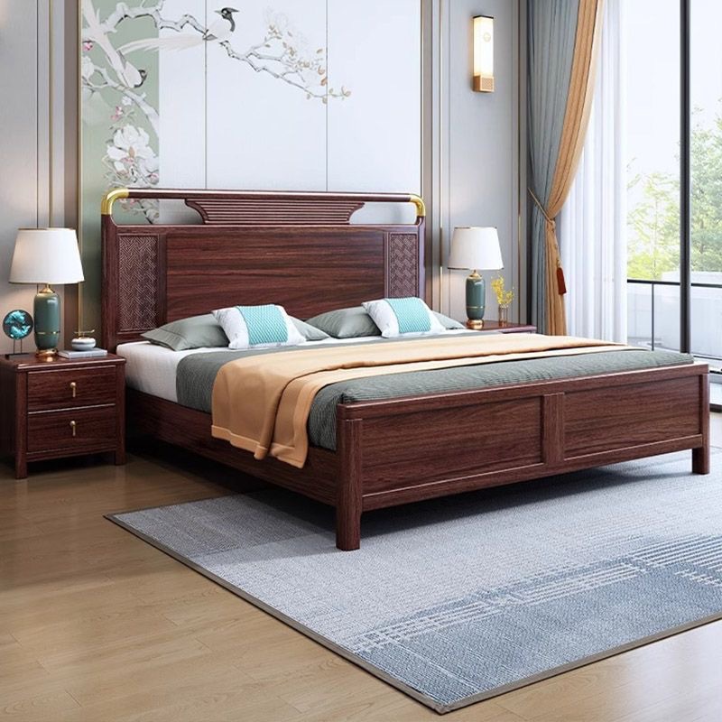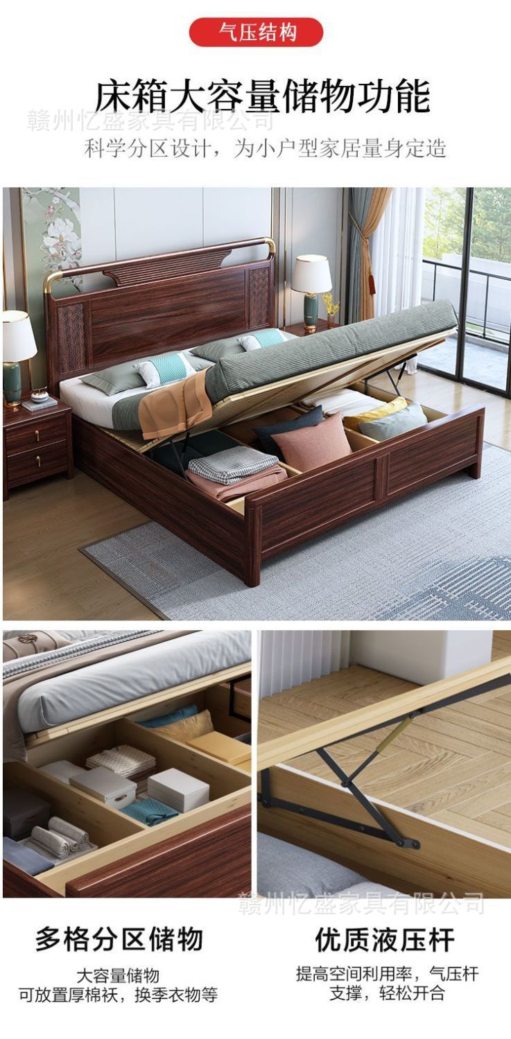 새로운 중국 스타일의 검은 나무 원목 침대 1.8m 더블 침대 라이트 럭셔리 현대 간단한 작은 아파트 1.5 마스터 침실 수납 침대