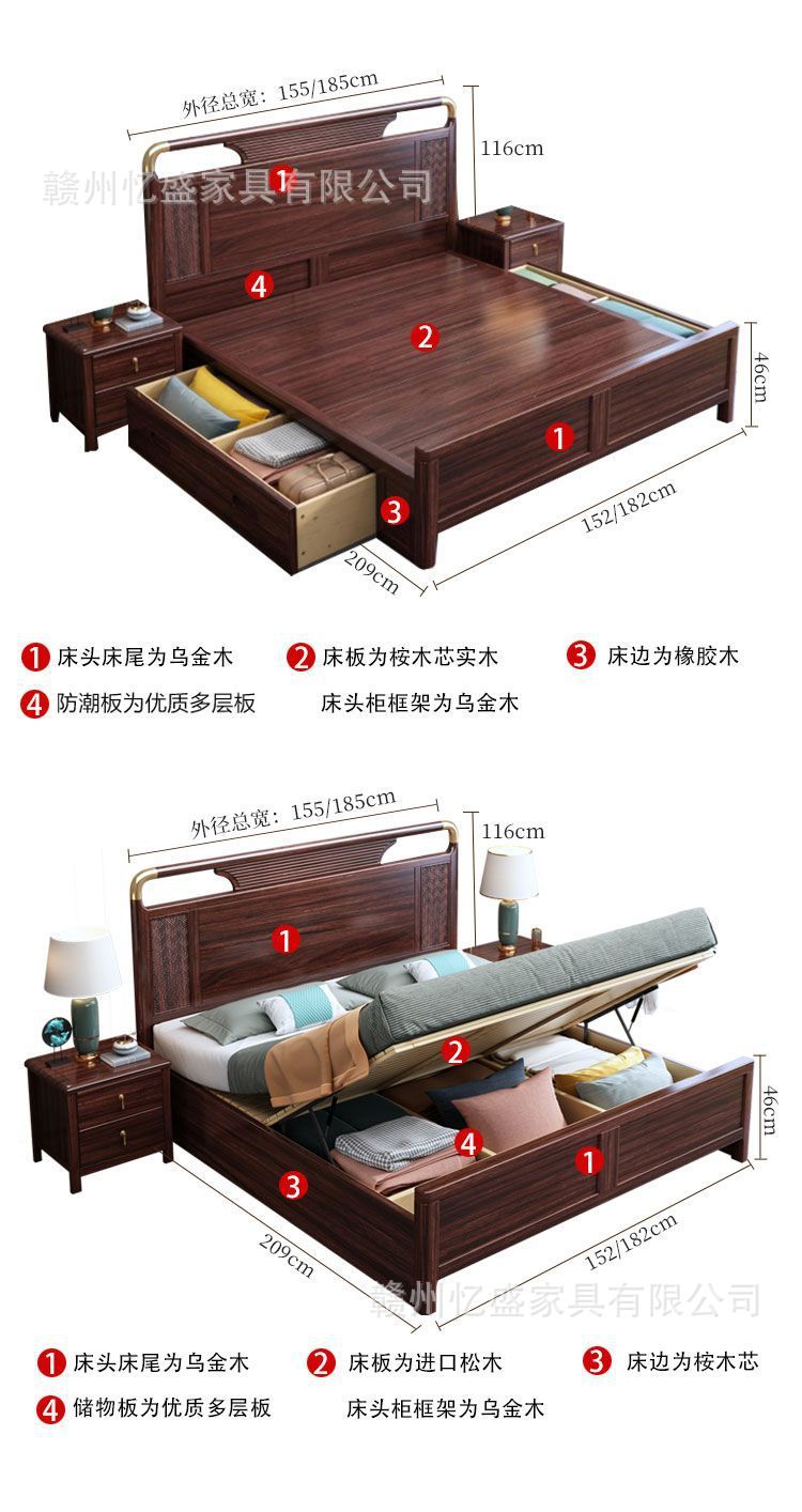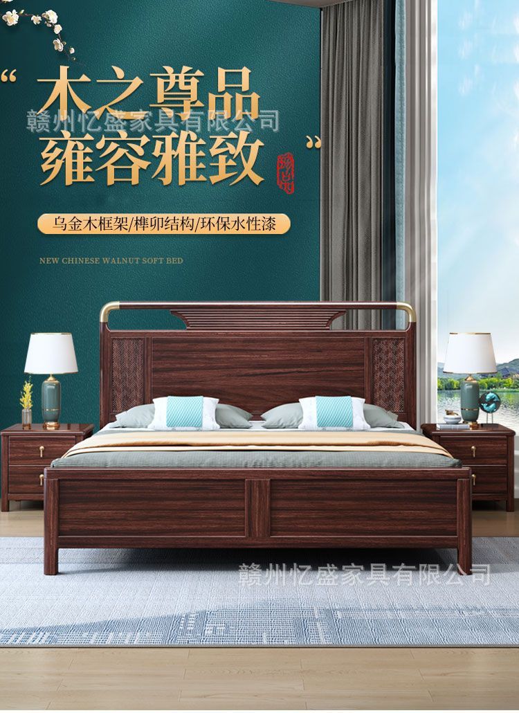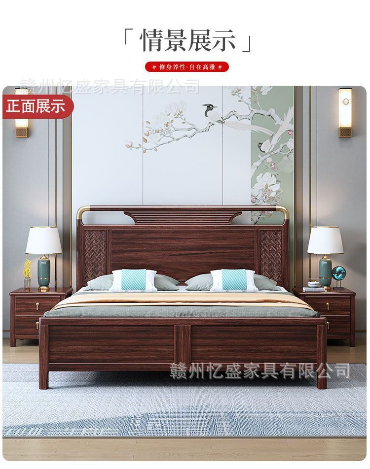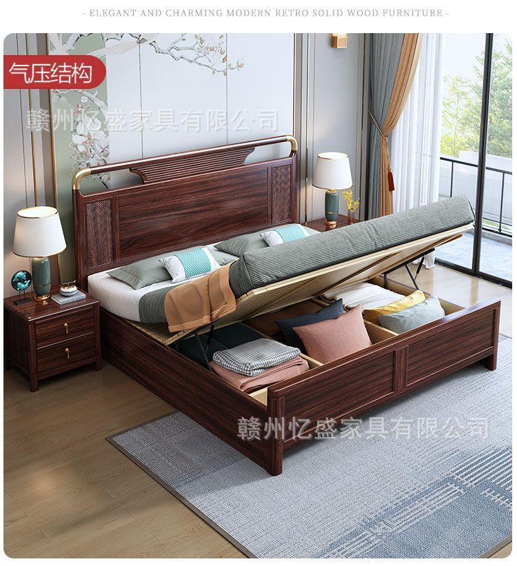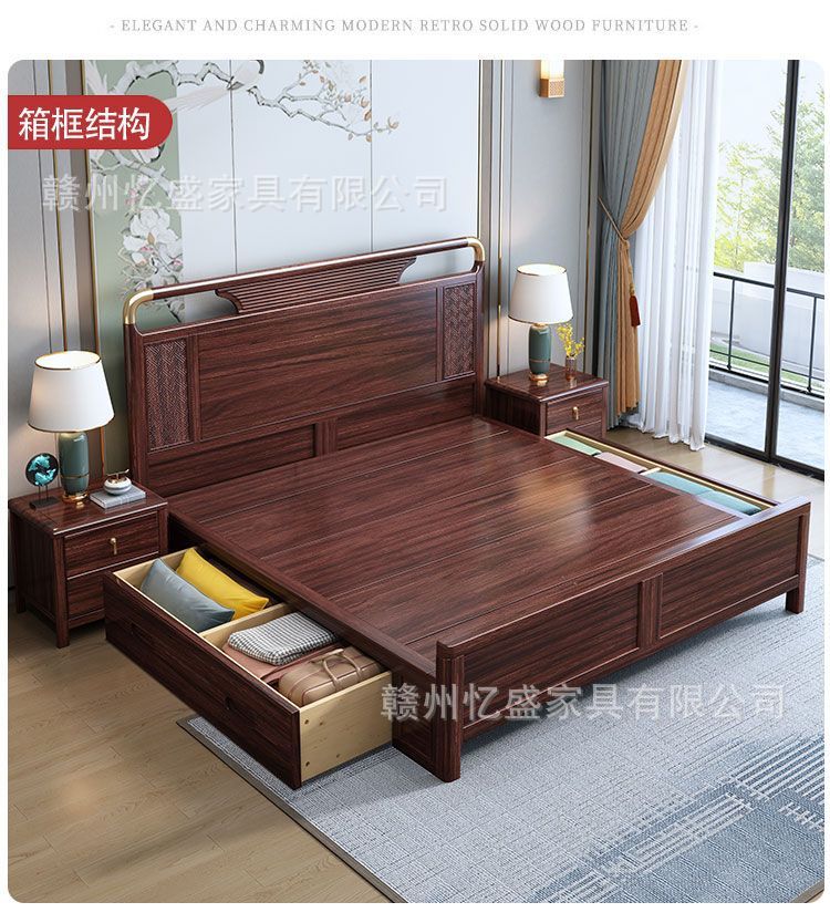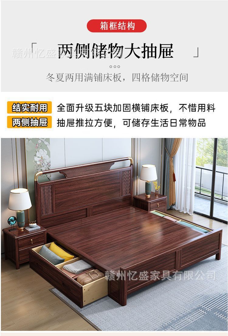 새로운 중국 스타일의 검은 나무 원목 침대 1.8m 더블 침대 라이트 럭셔리 현대 간단한 작은 아파트 1.5 마스터 침실 수납 침대스토어 가기