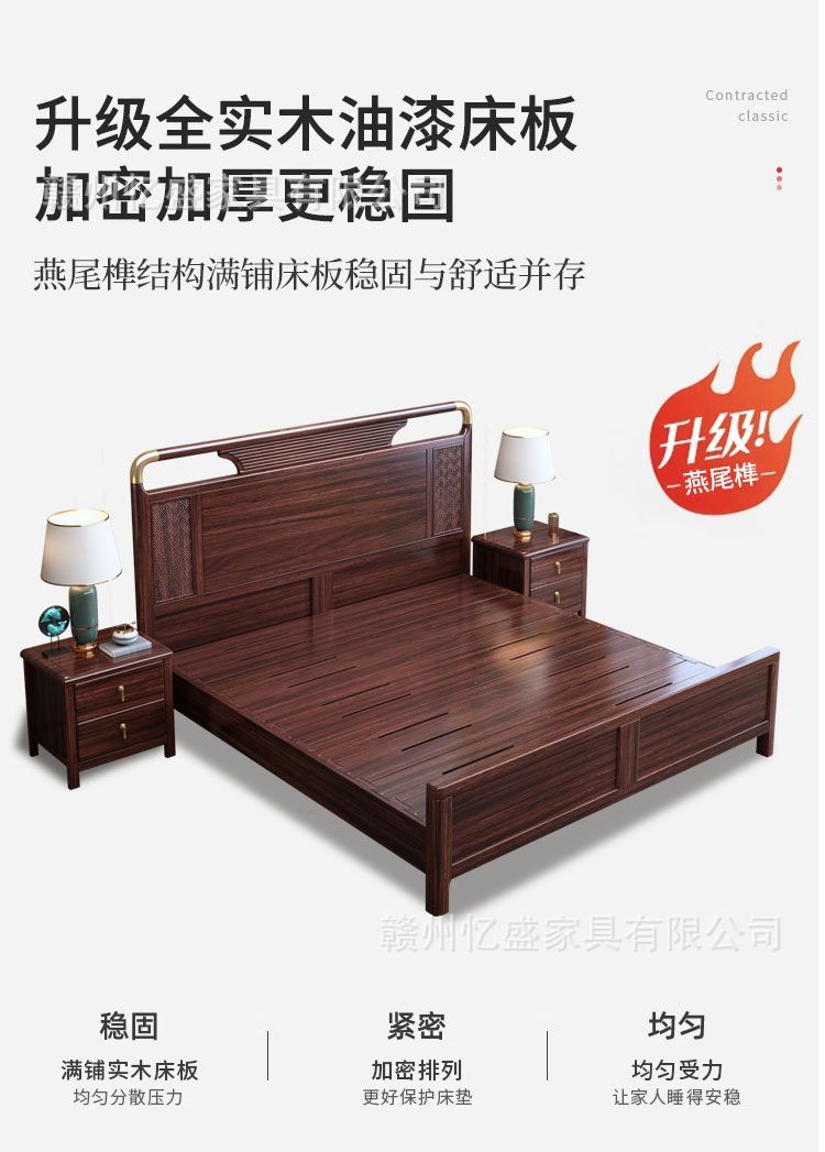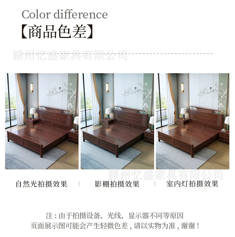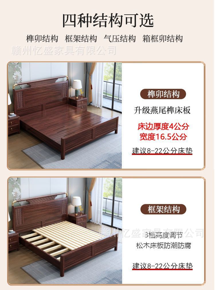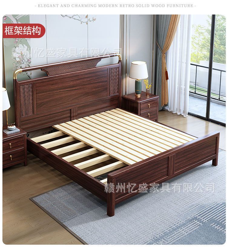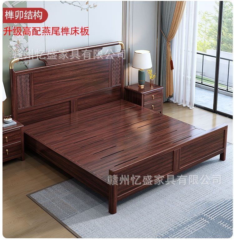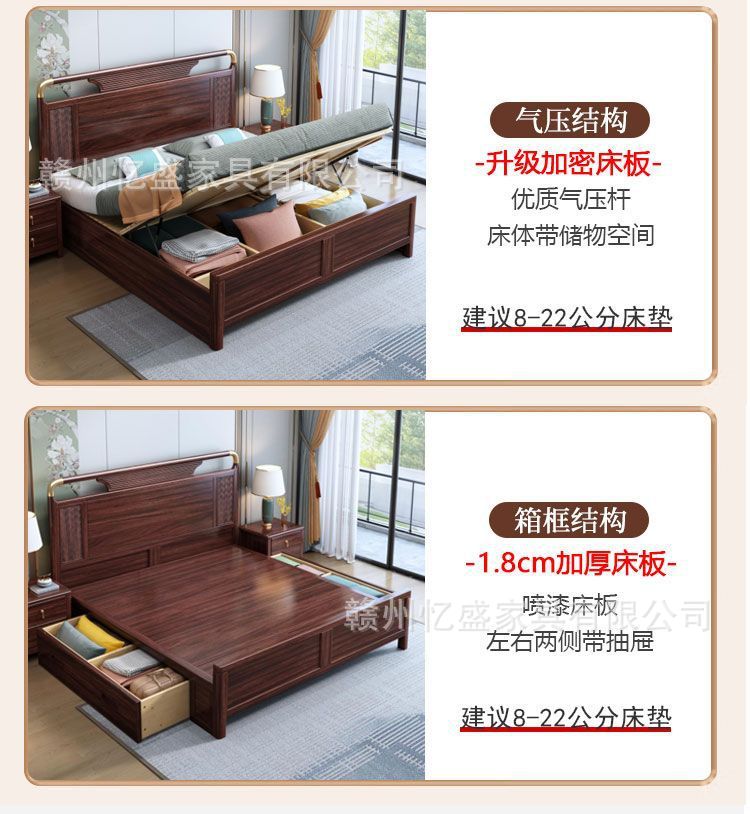 새로운 중국 스타일의 검은 나무 원목 침대 1.8m 더블 침대 라이트 럭셔리 현대 간단한 작은 아파트 1.5 마스터 침실 수납 침대스토어 가기