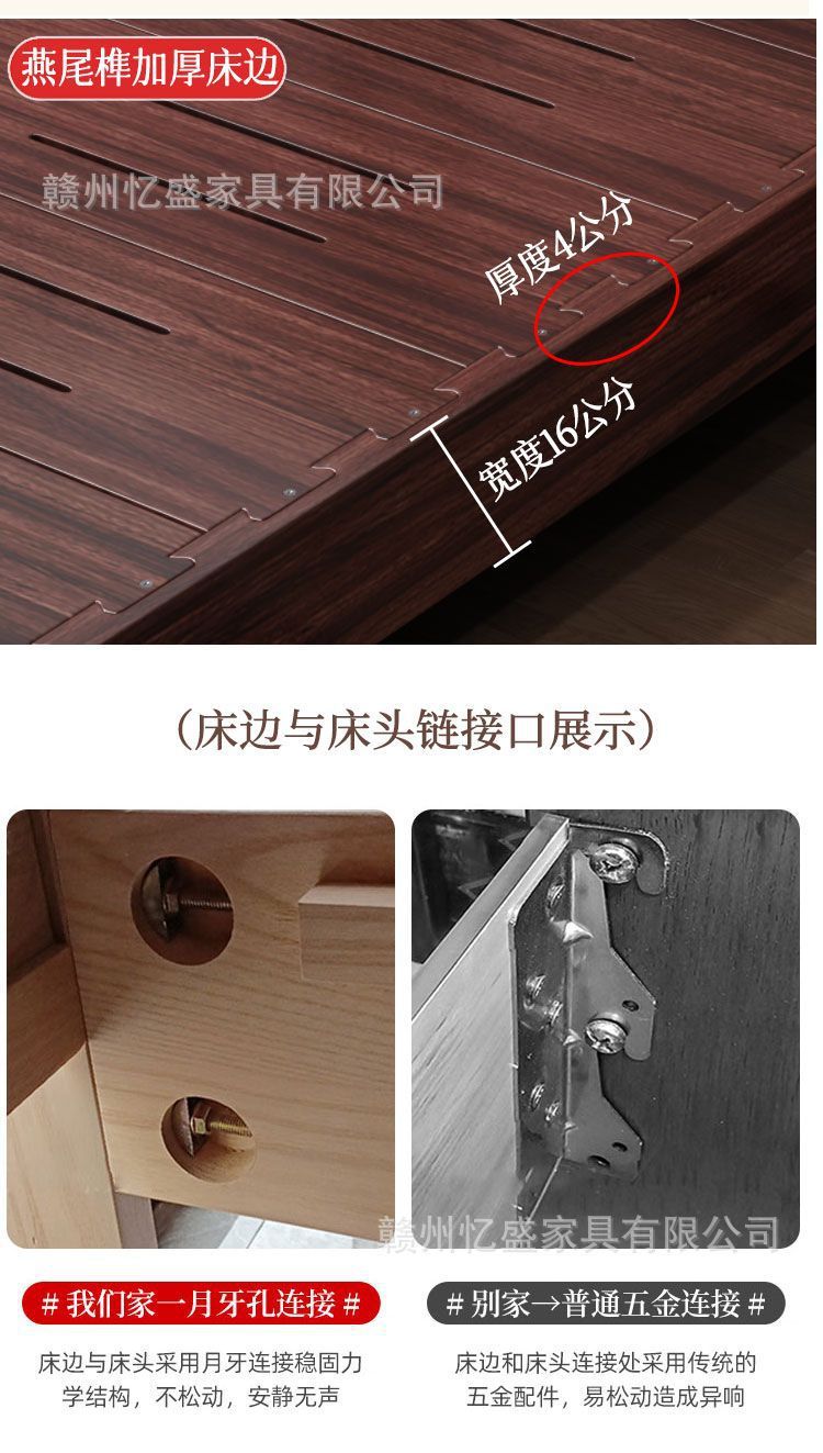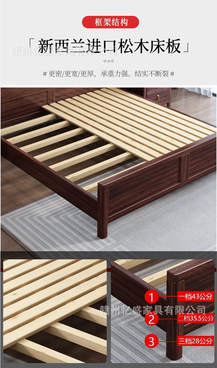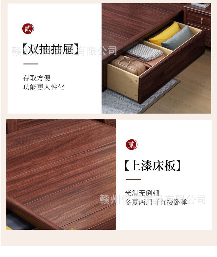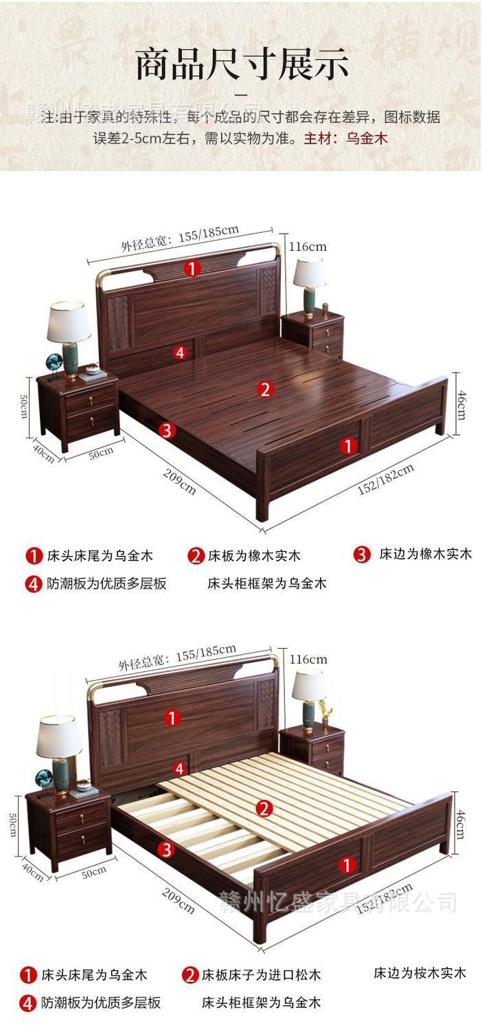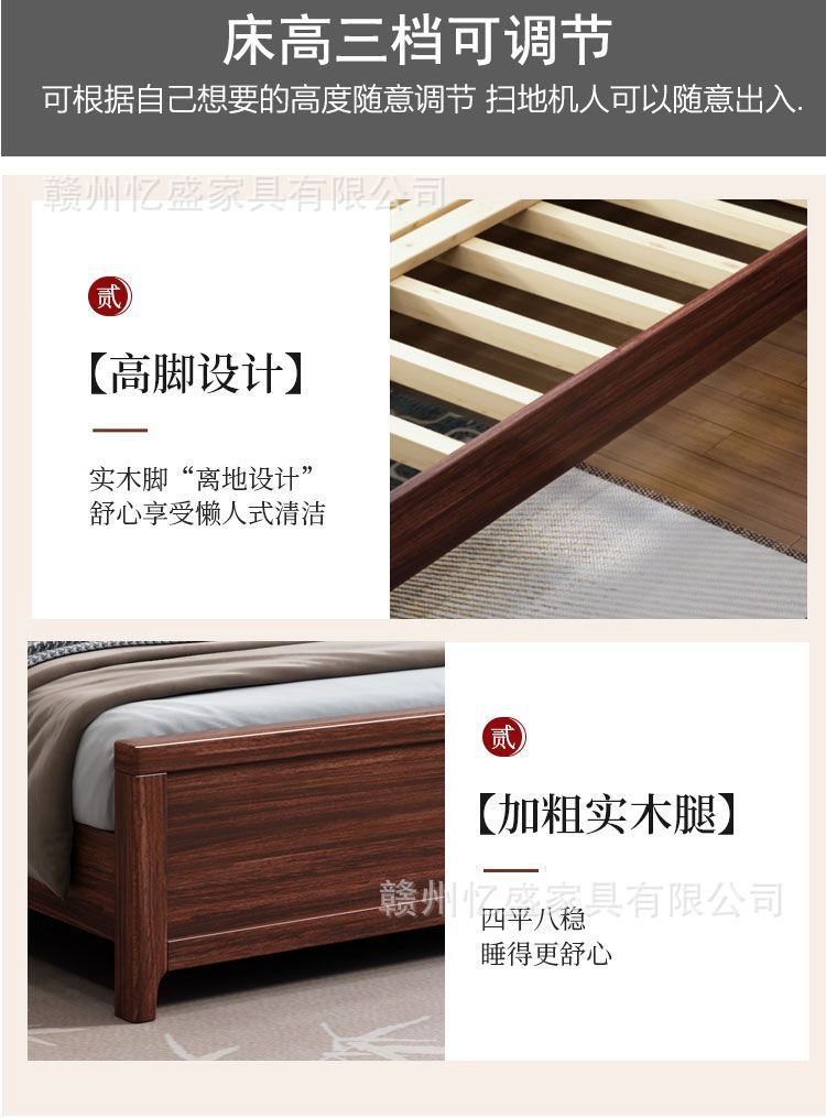 새로운 중국 스타일의 검은 나무 원목 침대 1.8m 더블 침대 라이트 럭셔리 현대 간단한 작은 아파트 1.5 마스터 침실 수납 침대스토어 가기