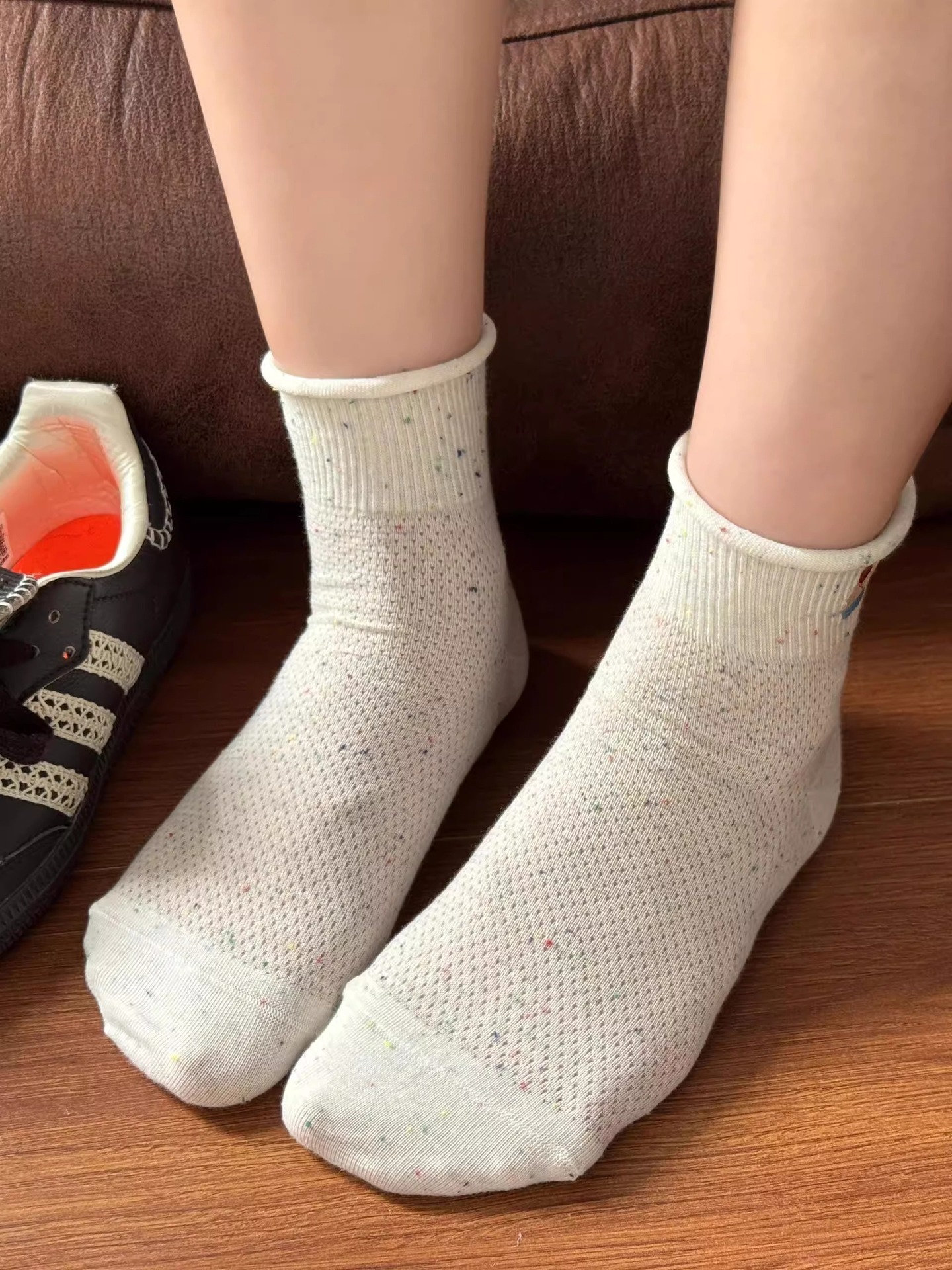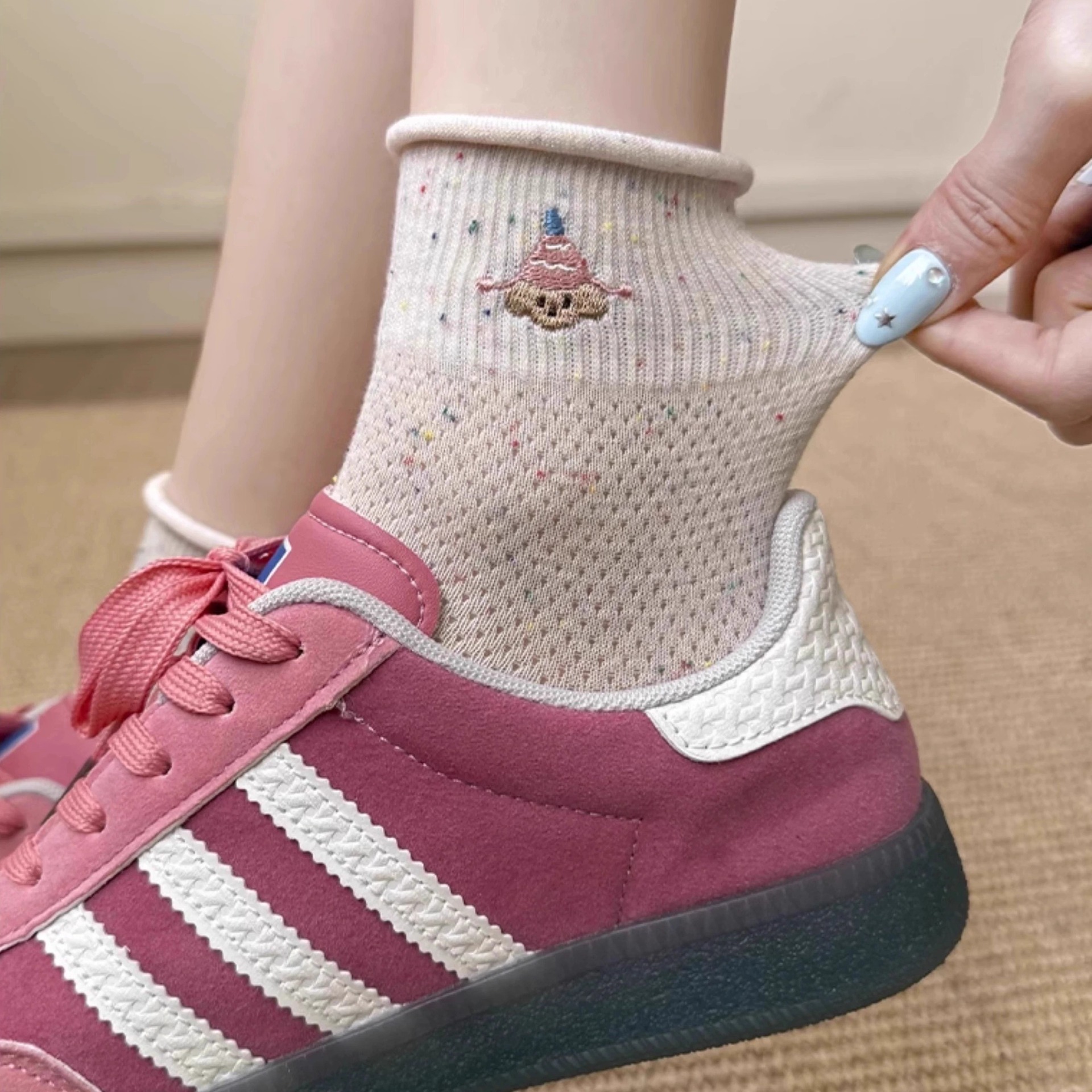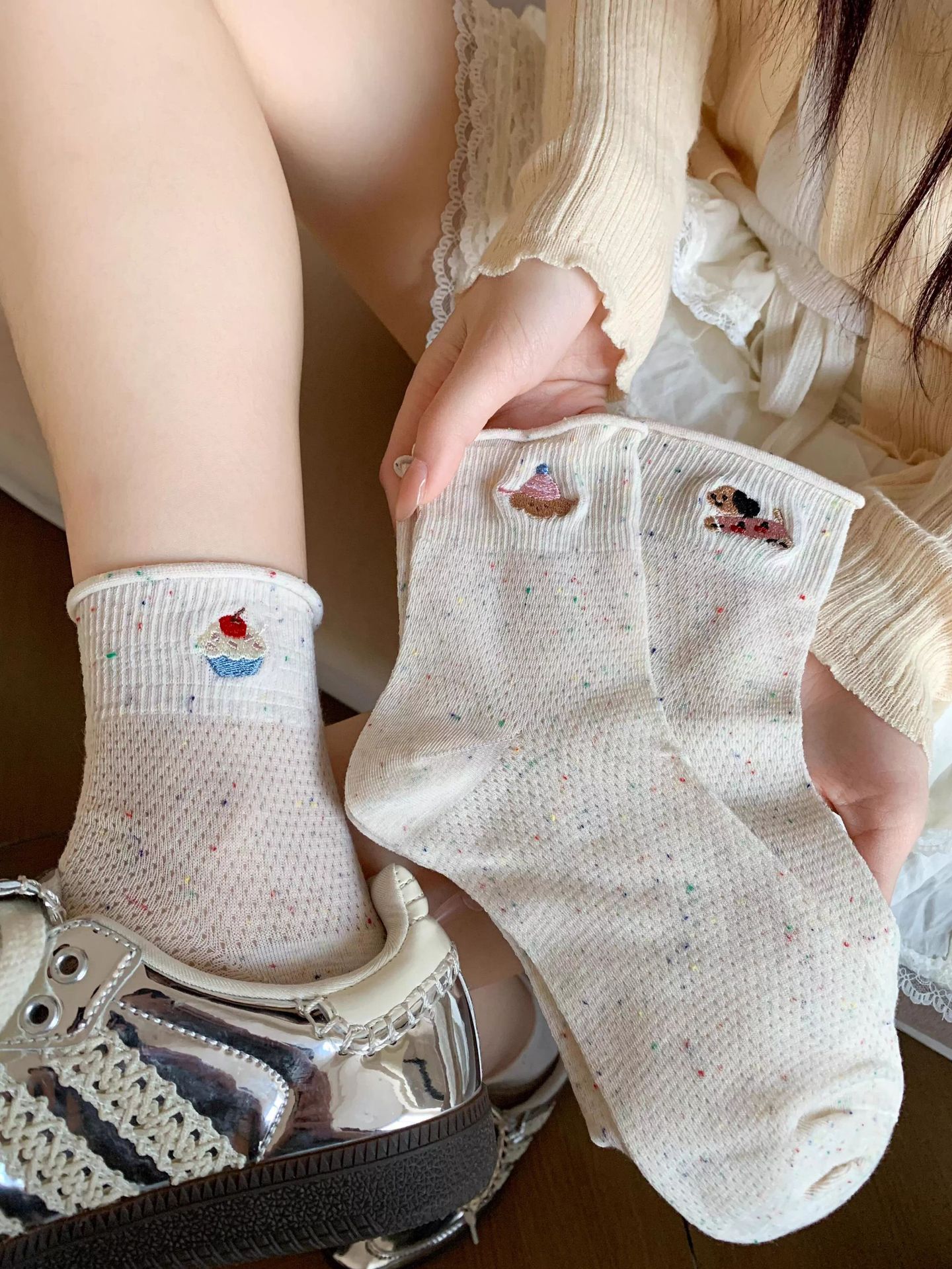여성을위한 얇은 양말 2025 새로운 여름 얇은 양말 통기성 순수 코튼 귀여운 숙녀 폴카 도트 컬러 복고풍 강아지스토어 가기