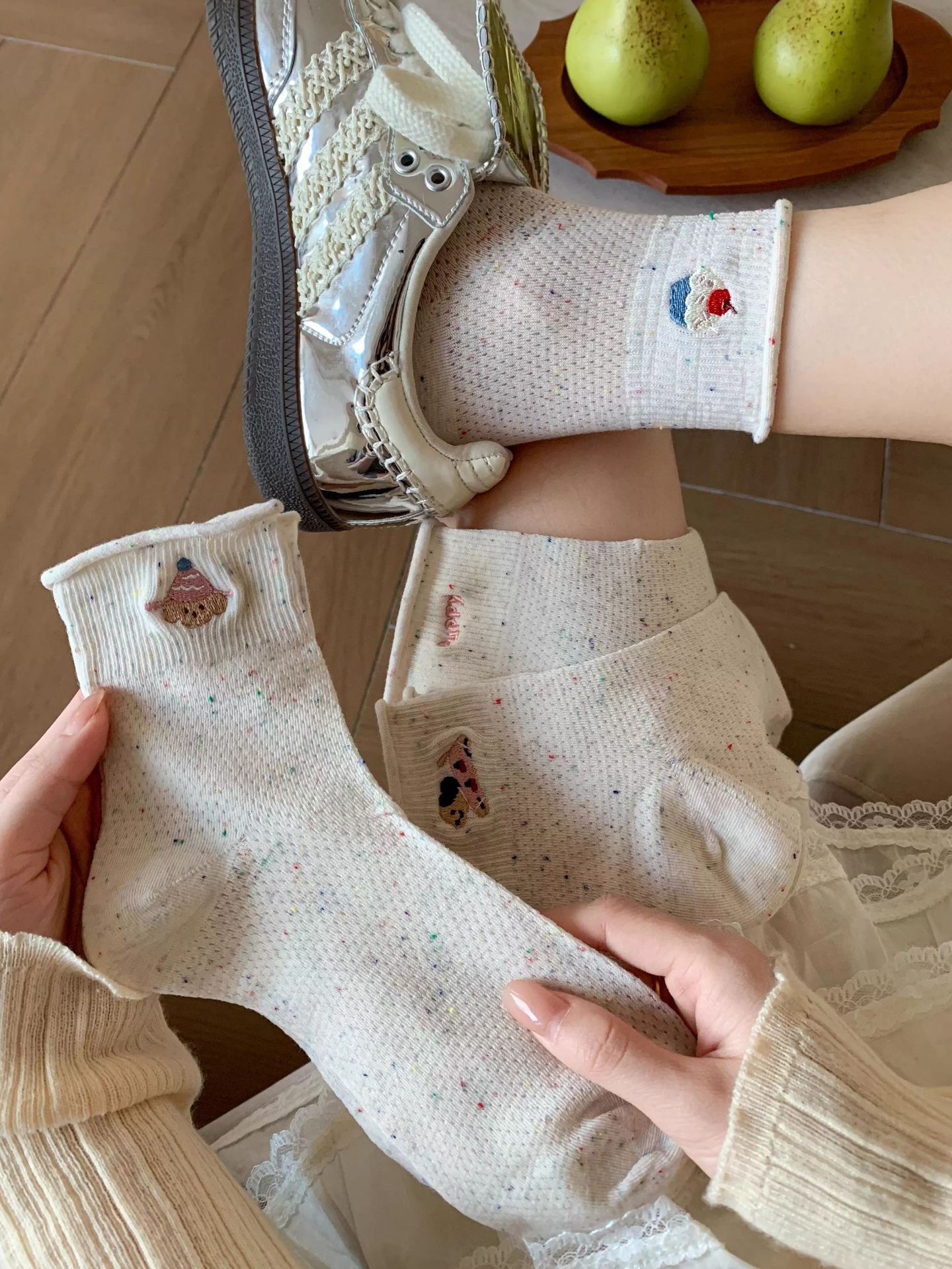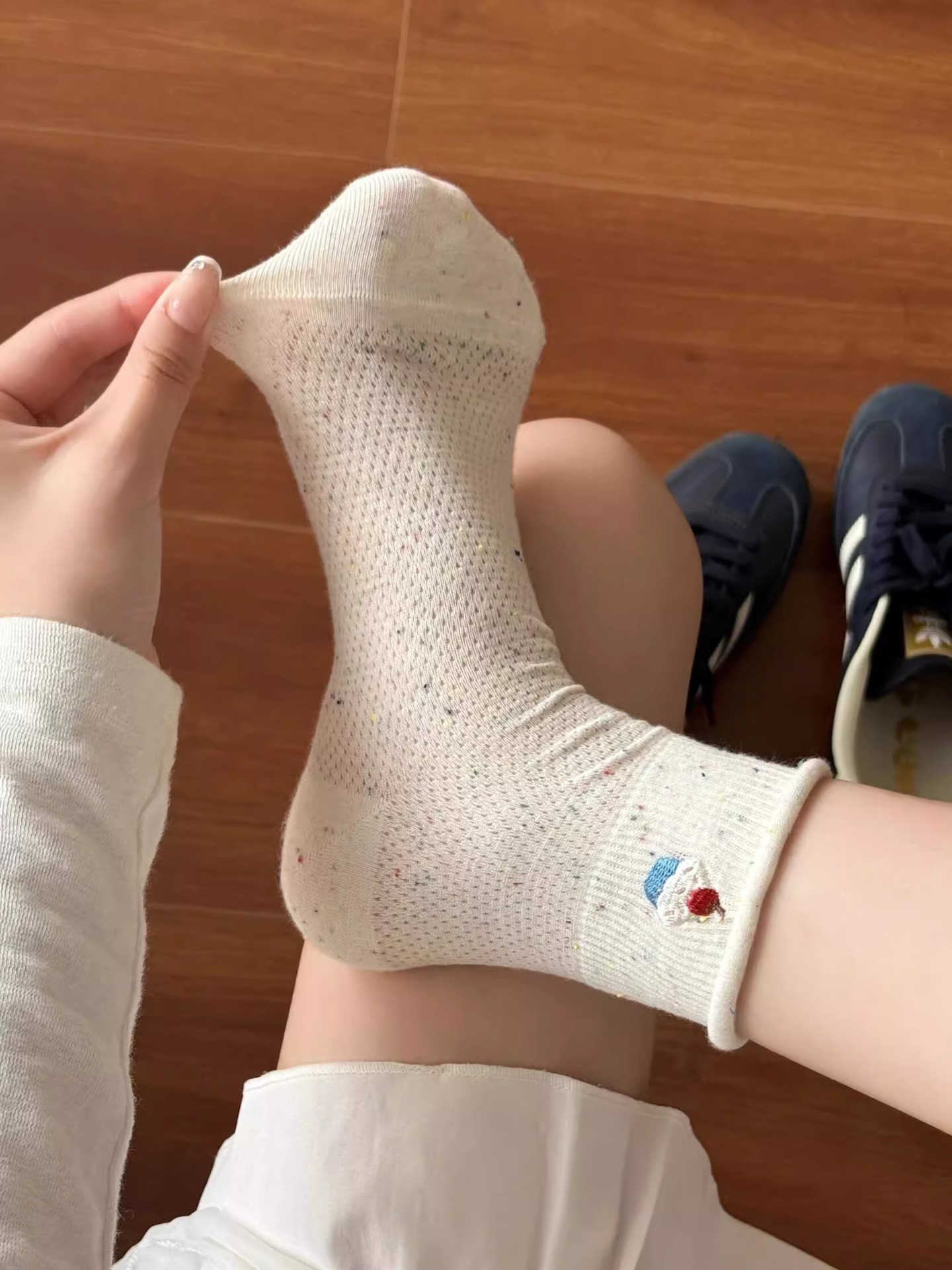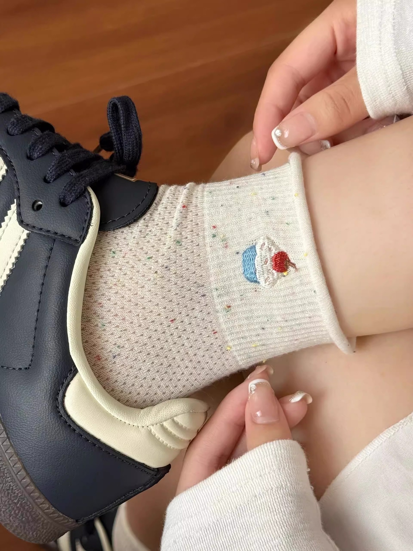 여성을위한 얇은 양말 2025 새로운 여름 얇은 양말 통기성 순수 코튼 귀여운 숙녀 폴카 도트 컬러 복고풍 강아지스토어 가기