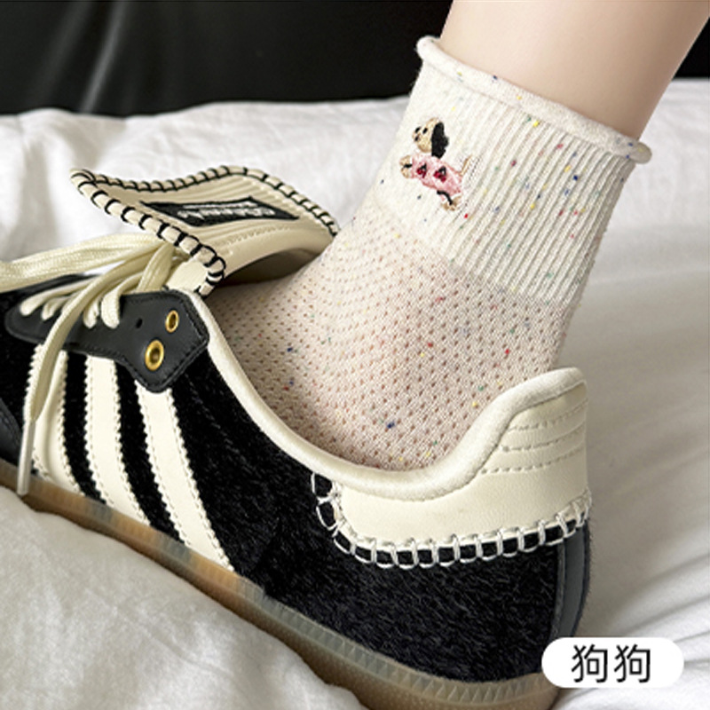 여성을위한 얇은 양말 2025 새로운 여름 얇은 양말 통기성 순수 코튼 귀여운 숙녀 폴카 도트 컬러 복고풍 강아지