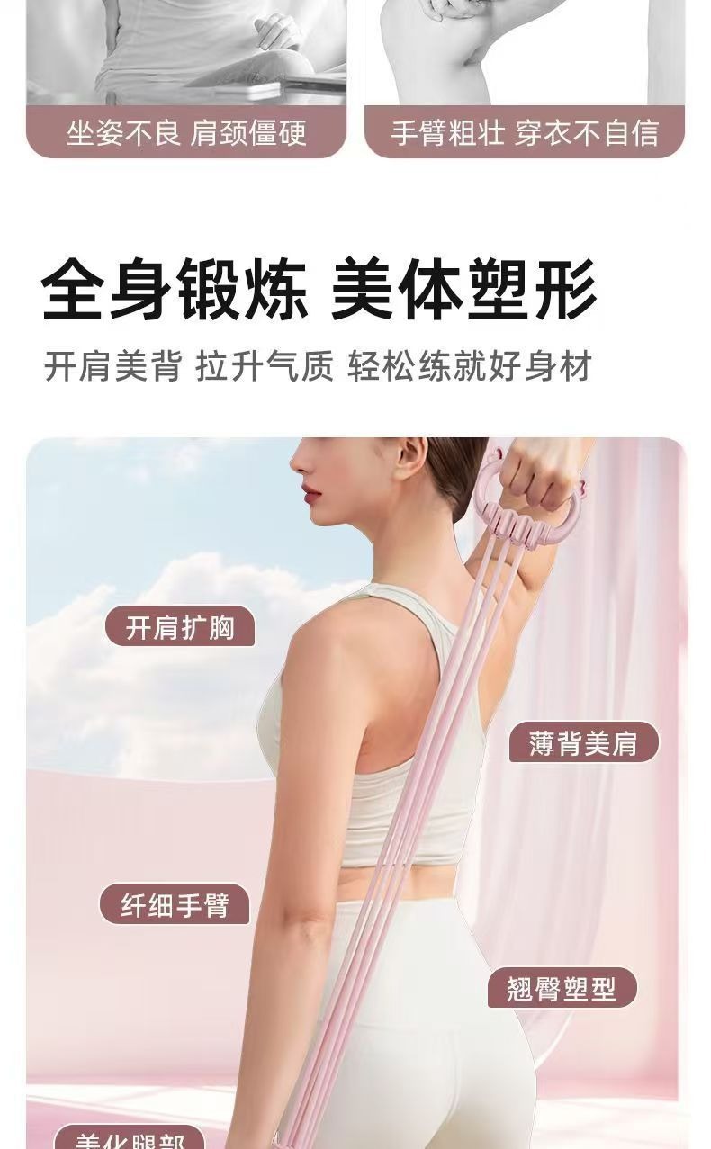 Changfeng 8자형 여성용 텐셔너, 오픈백 탄성 밴드, 텐션 로프, 홈 피트니스 요가 스트레칭 및 등 운동 도구