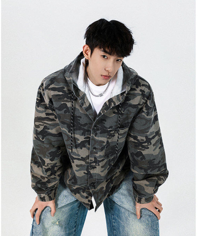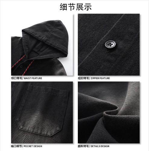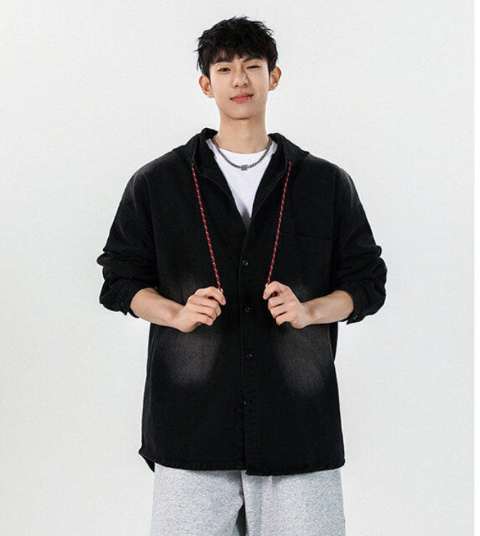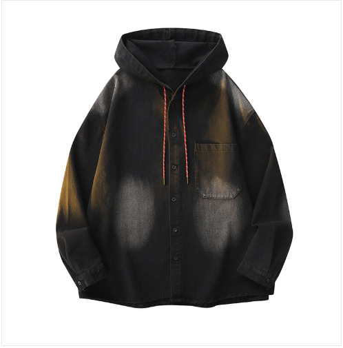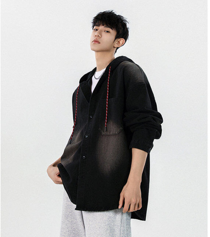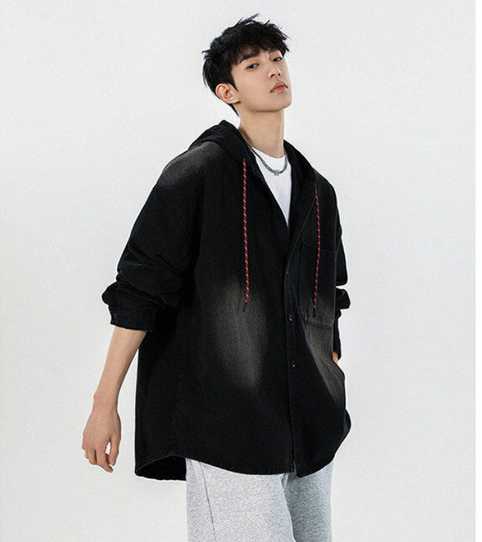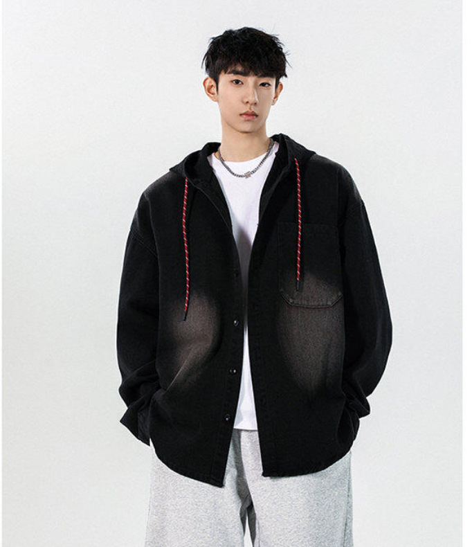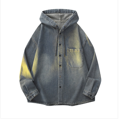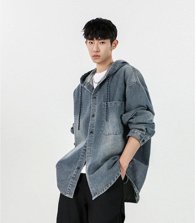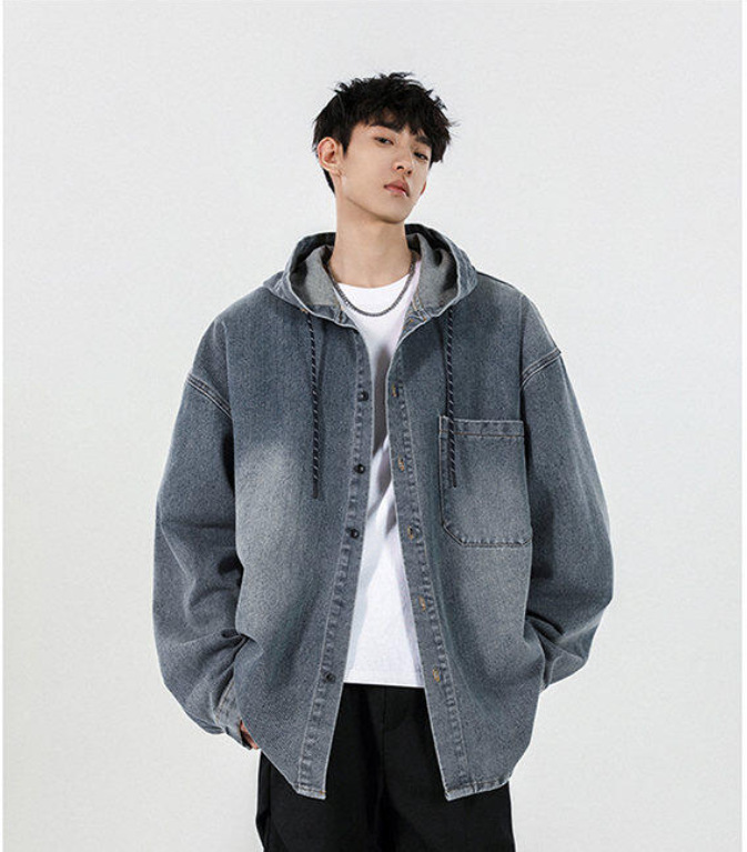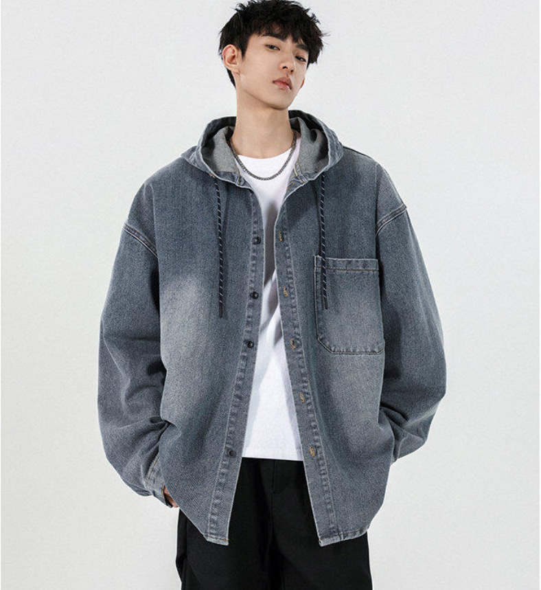 봄과 가을 미국 복고풍 재킷 남성 캐주얼 후드 데님 재킷 한국 스타일 느슨한 커플 긴팔 재킷 탑스토어 가기