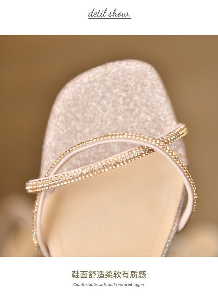 高级感细跟凉鞋女2024夏季新款时尚水钻一字式扣带女式罗马凉鞋
