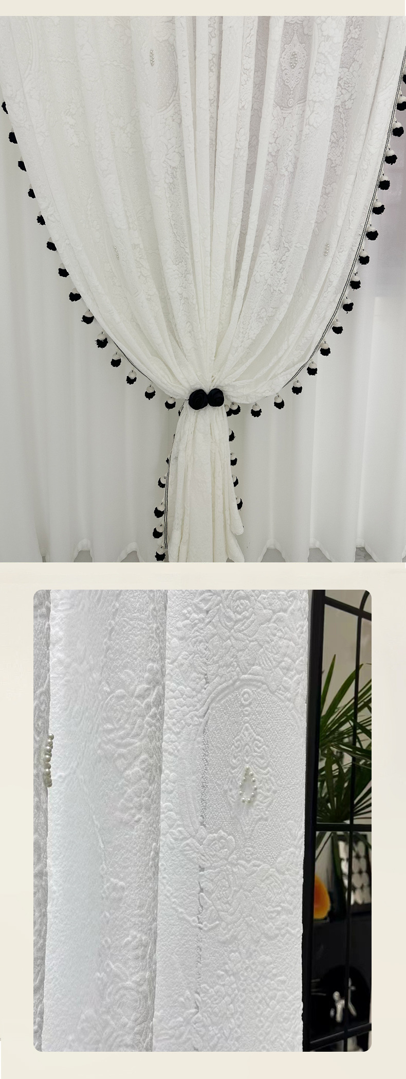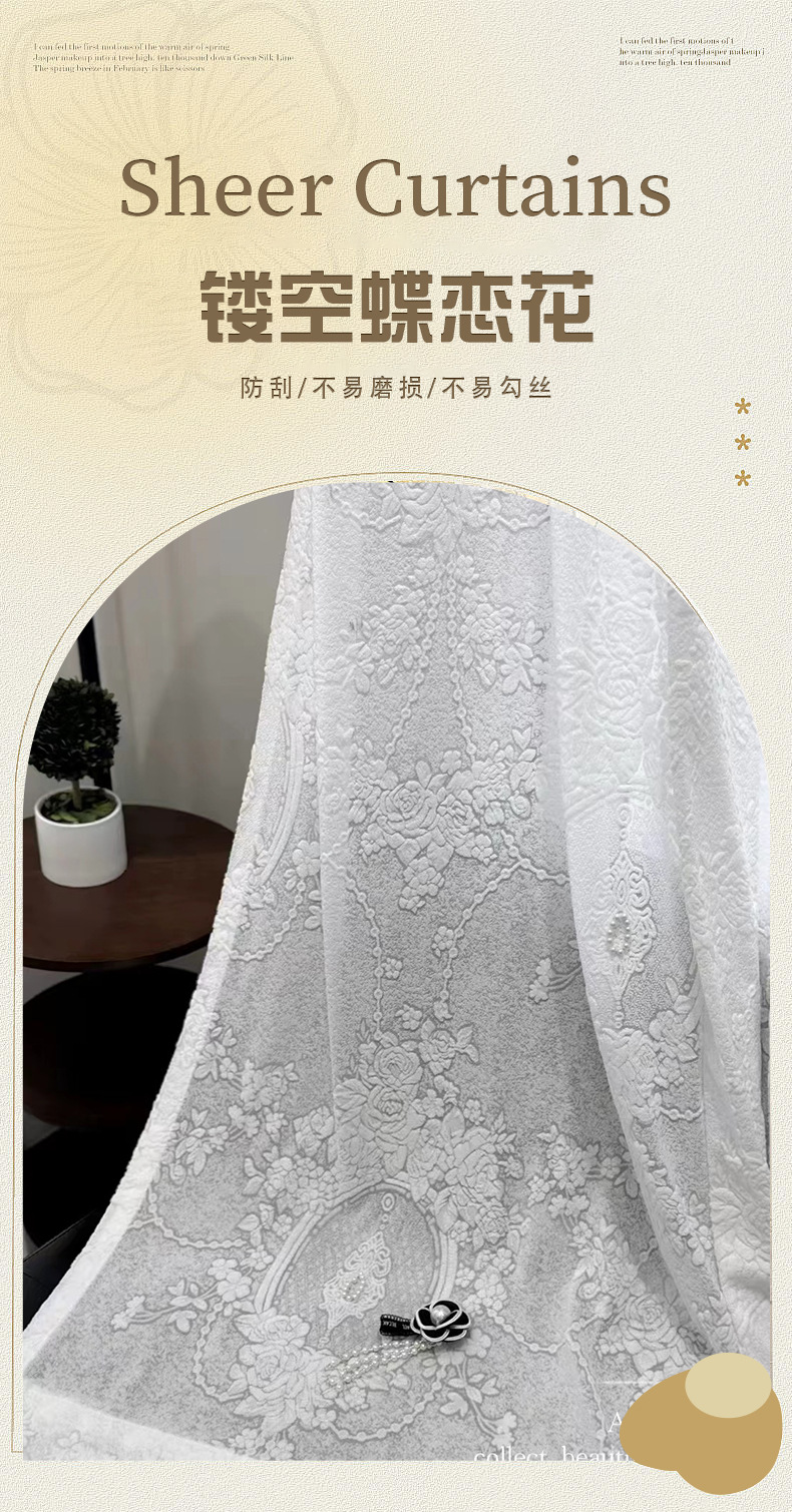 사일런트 커튼 프렌치 크림 스타일 중공 접시 사랑 꽃 투명 불투명 흰색 거즈 거실 발코니 플로팅 창 완제품 창 스크린스토어 가기