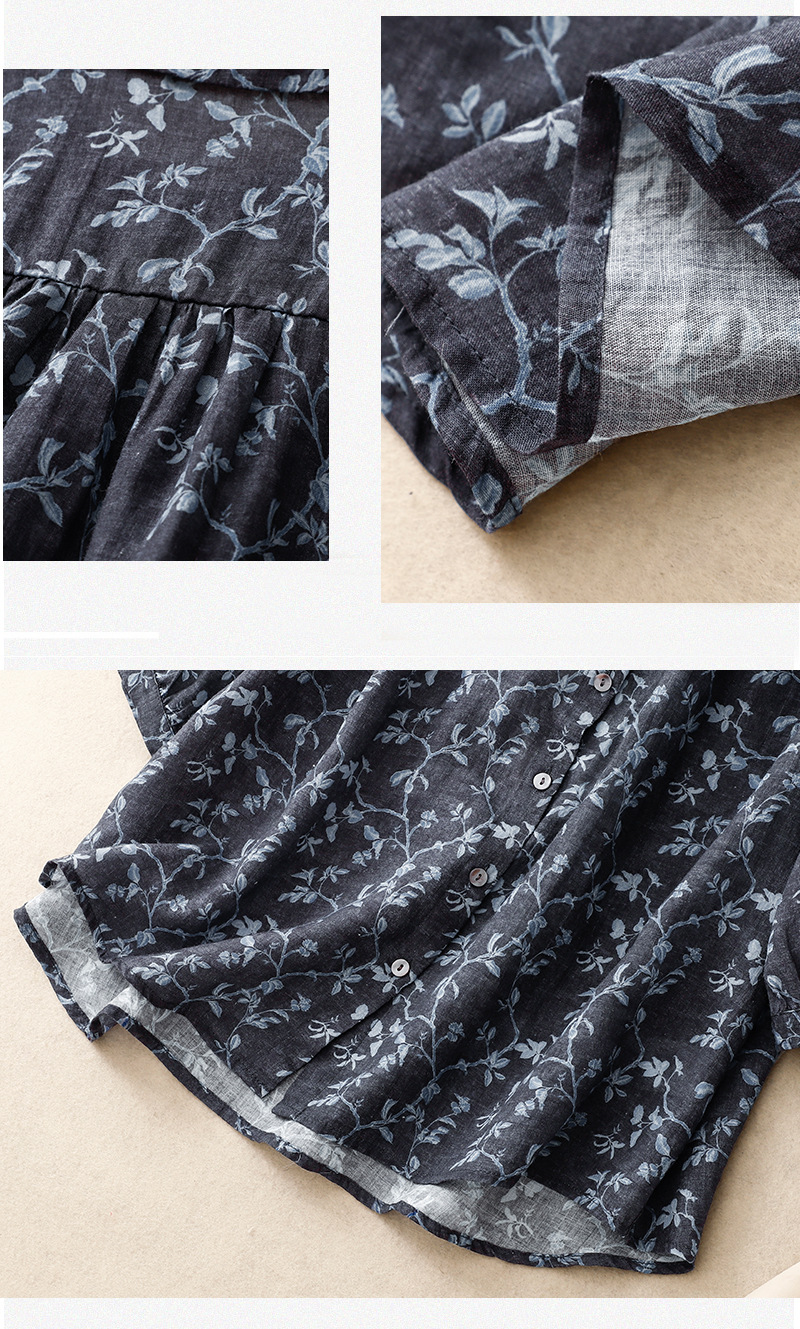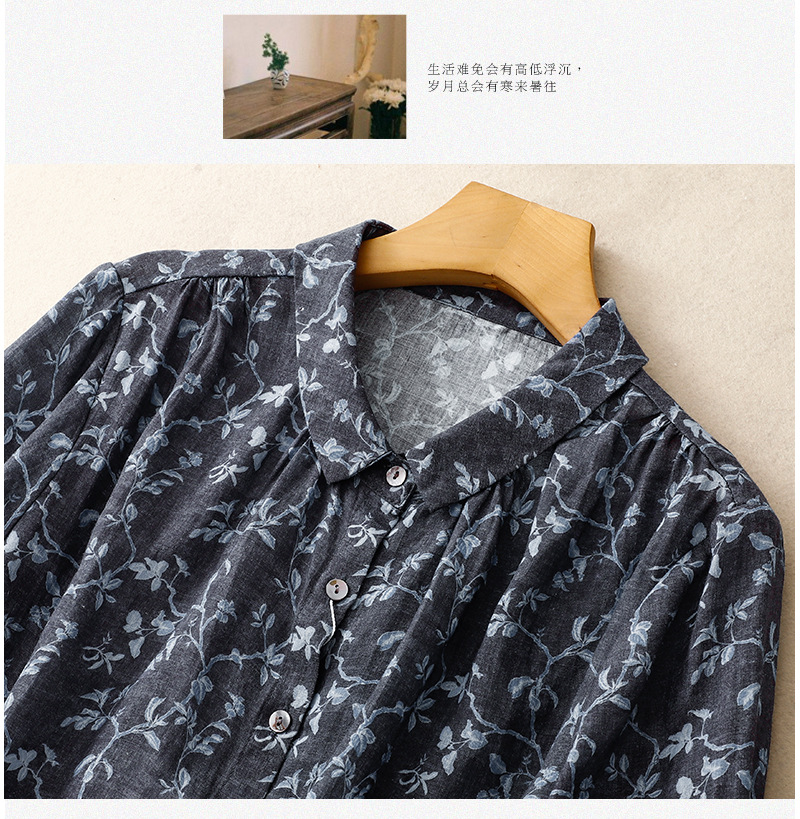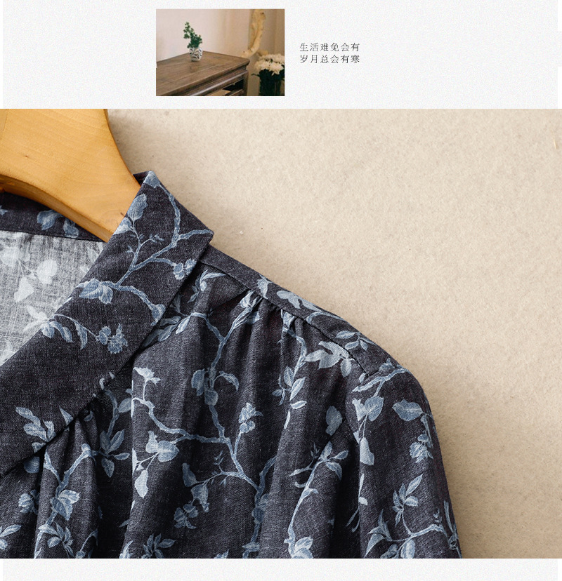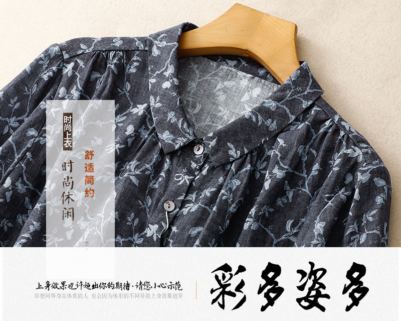 2025년 여름 중년 엄마 예술적 루즈 슬리밍 배 커버 꽃무늬 라펠 7부 소매 셔츠 탑 여성용스토어 가기