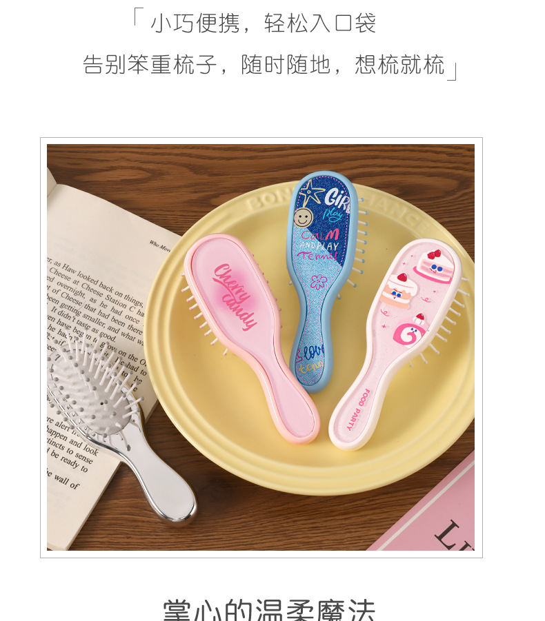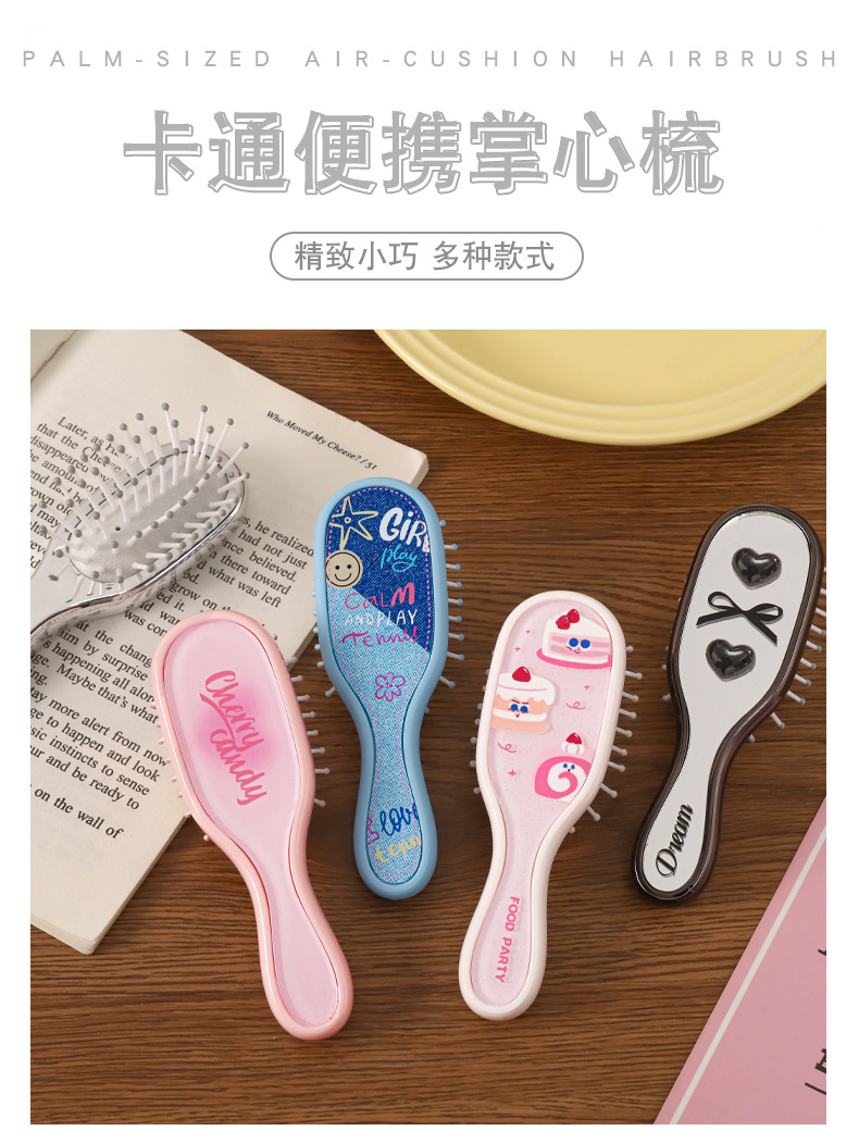Binhongjia 새로운 미니 포켓 팜 빗 에어백 빗 긴 머리를 가진 소녀를위한 특수 에어 쿠션 빗 정전기 방지 작은 빗