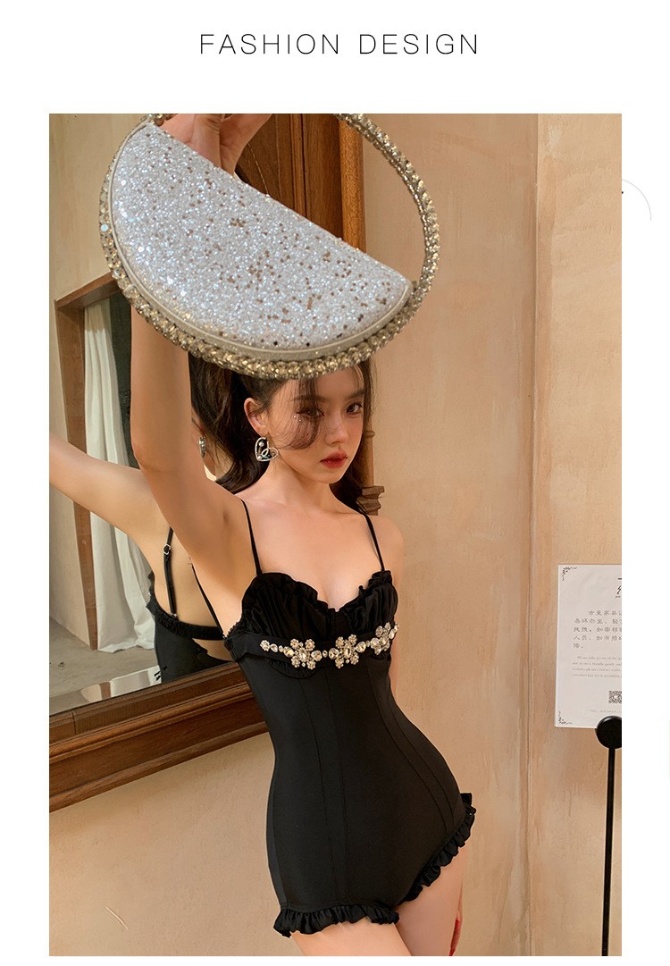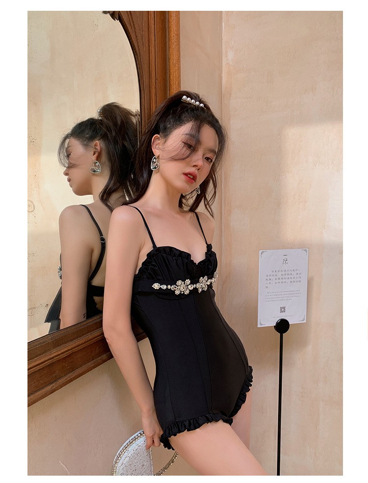 여성용 수영복 2025 새로운 여성 수영복 Yi Mengling 같은 스타일 검은색 원피스 스커트 스타일 보수적인 온천 고급 감각