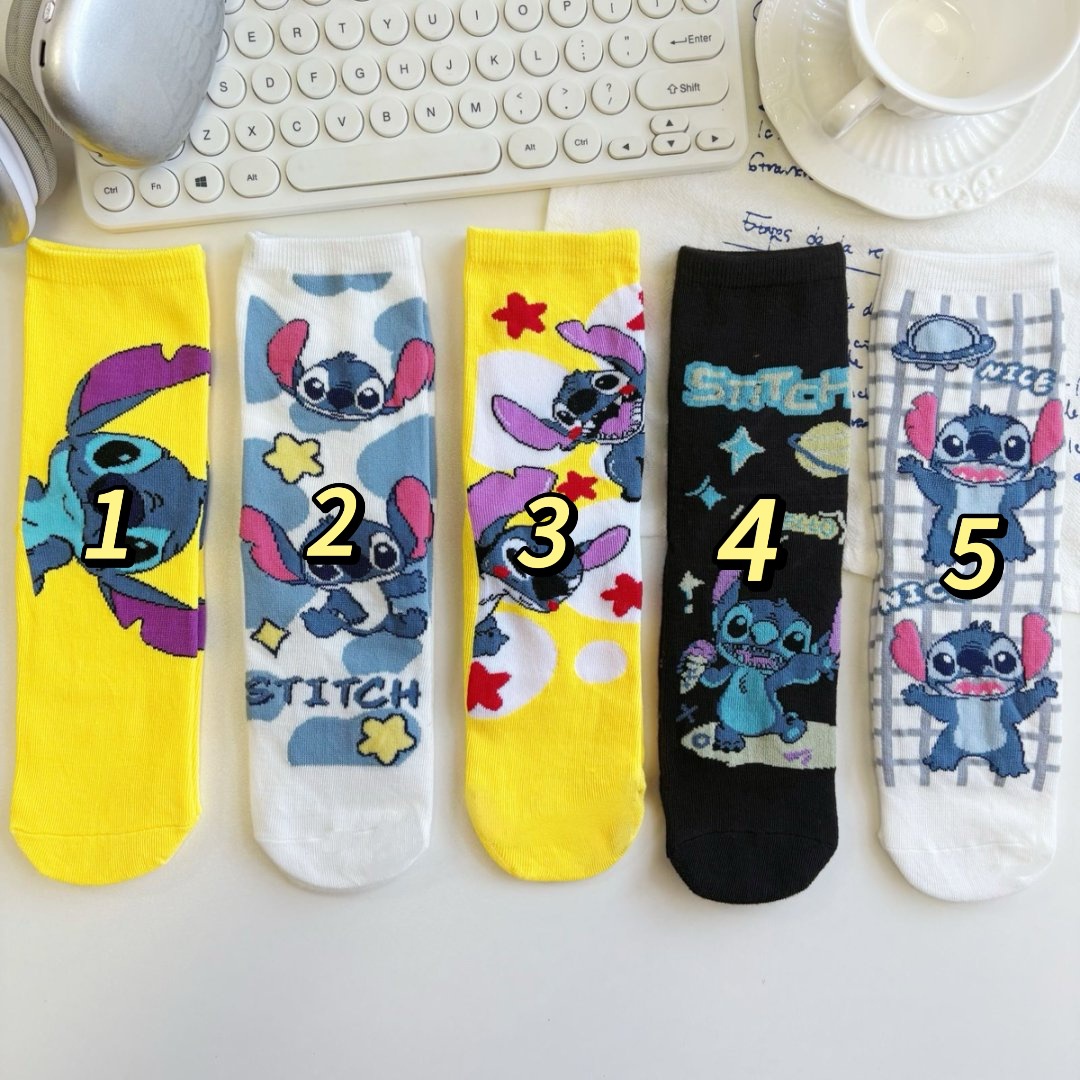 여름 한국어 버전 새로운 기능 봄과 여름 중간 튜브 학생 만화 스티치 양말 새로운 여성 양말 귀여운 중간 튜브 양말스토어 가기