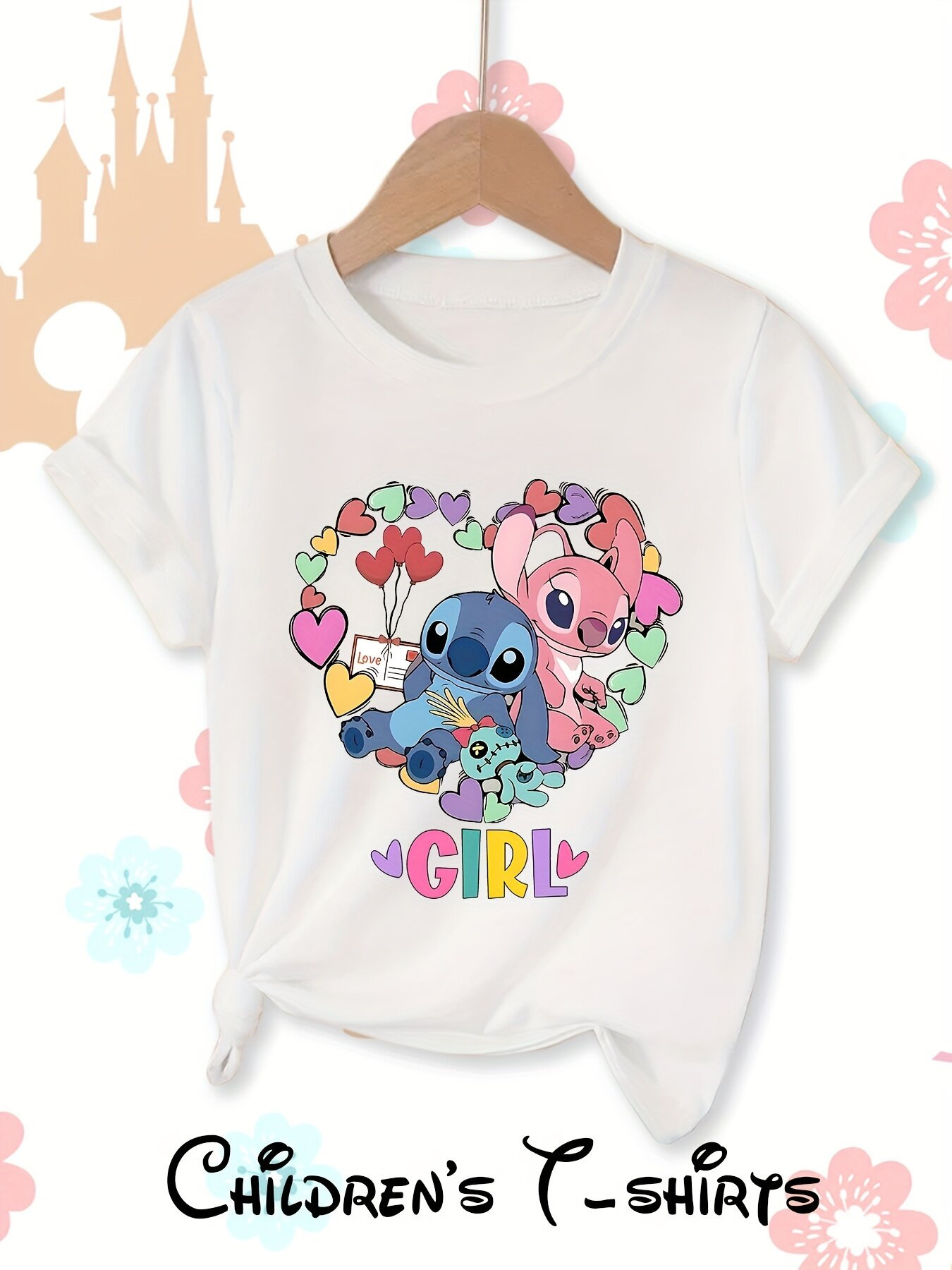 국경을 넘는 트렌디 브랜드 스티치 만화 프린트 반팔 티셔츠 아동 트렌디 여름 신작 중대형 아동 캐주얼 티셔츠