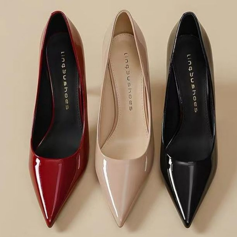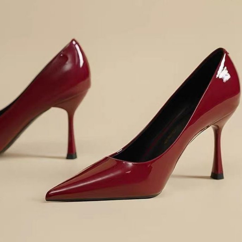 2025 여름 신상 여성용 레드 하이힐 유럽과 미국의 크로스보더 대형 패션 신발 뾰족한 발가락 얕은 입 연회 여성 신발스토어 가기