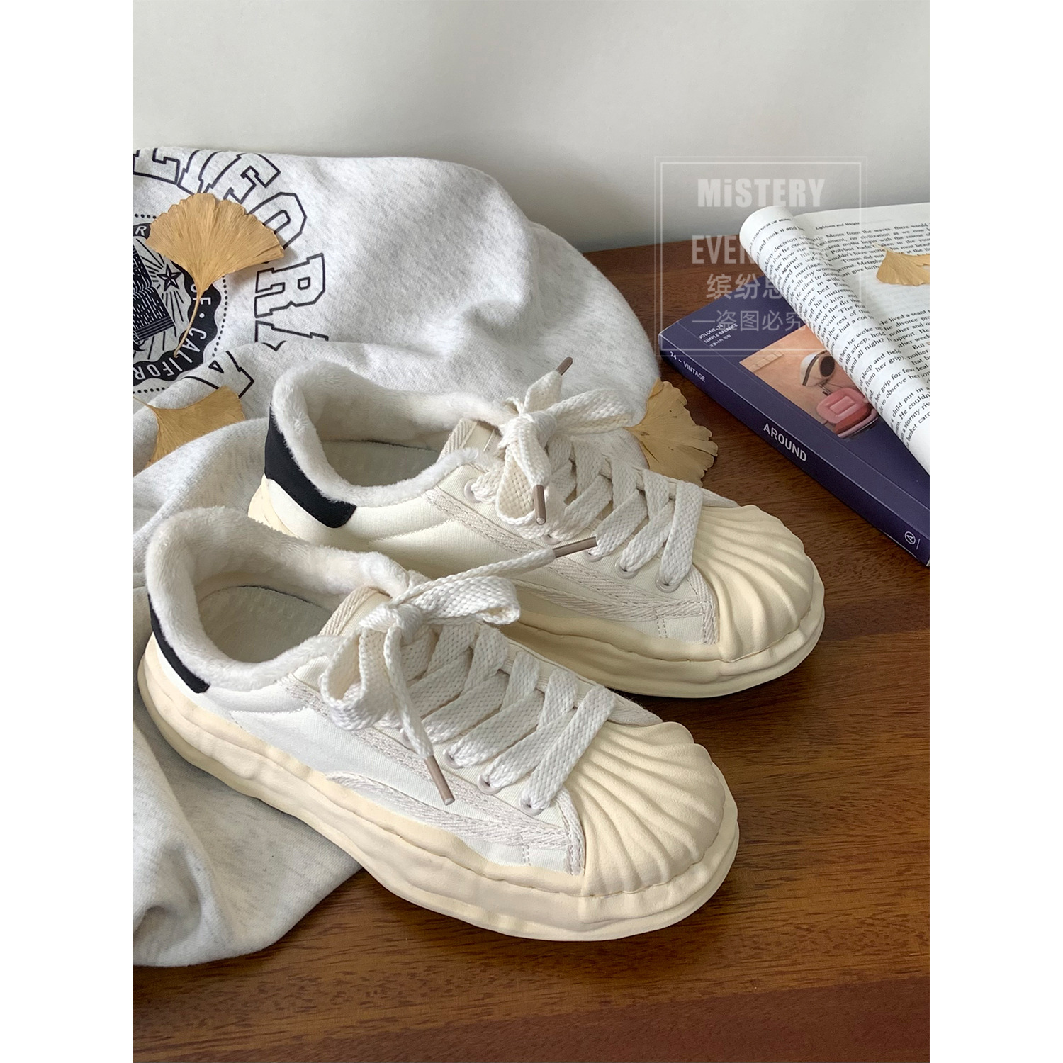 두꺼운 밑창 쉘 토우 용해 캔버스 신발 여성 키 증가 운동화 2024 새로운 다목적 운동화 Ins 트렌드 MIS-634