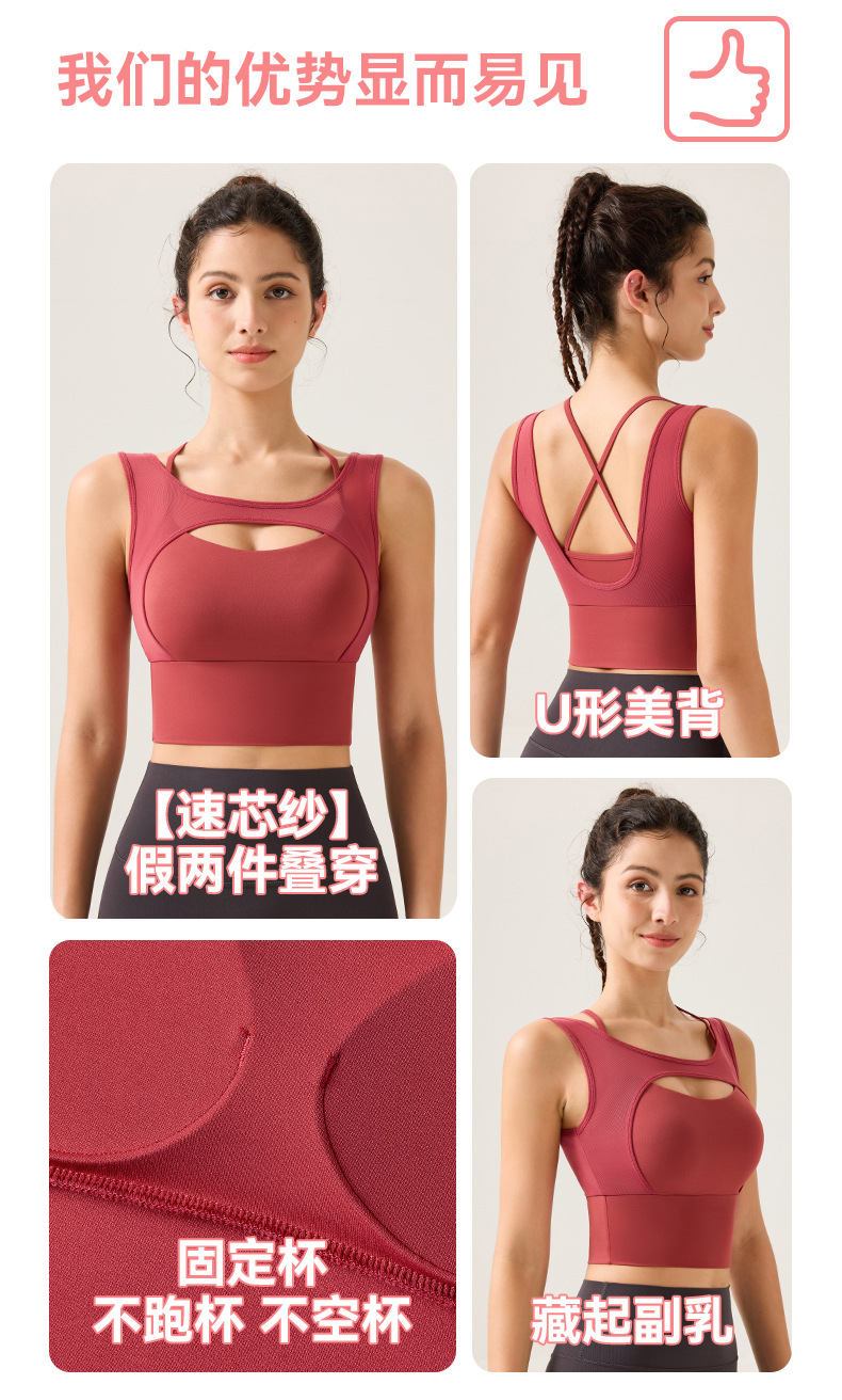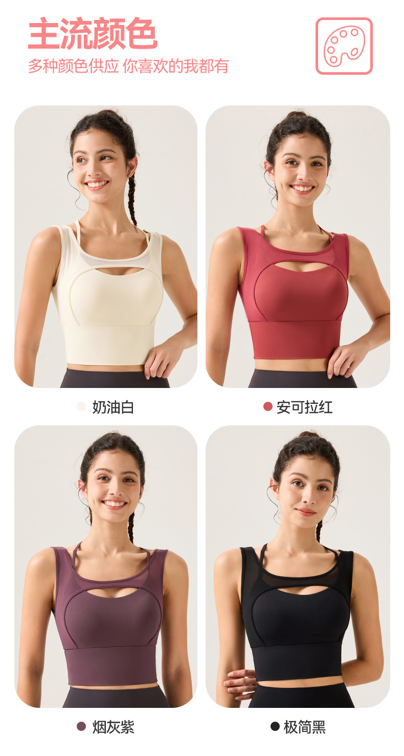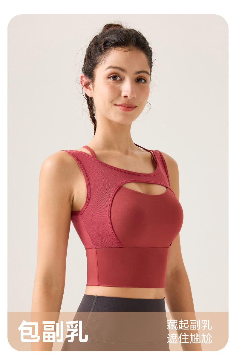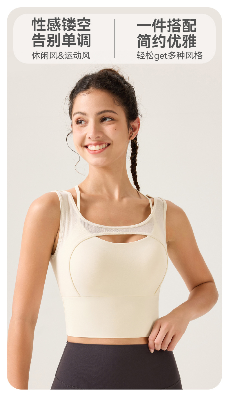 새로운 디자인의 딥 V 네크라인 누드 느낌 스포츠 브라, 봄철 메쉬 소재, 섹시한 얇은 스트랩, 크로스백 디자인, 충격 방지, 푸쉬업 기능을 갖춘 여성용 스포츠 브라스토어 가기