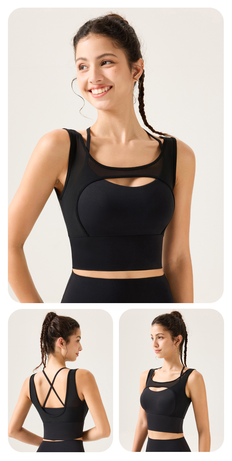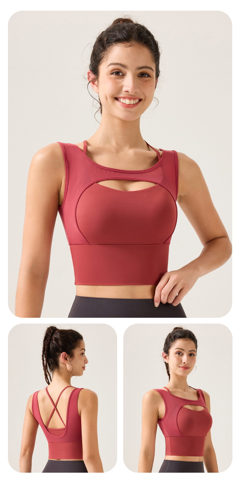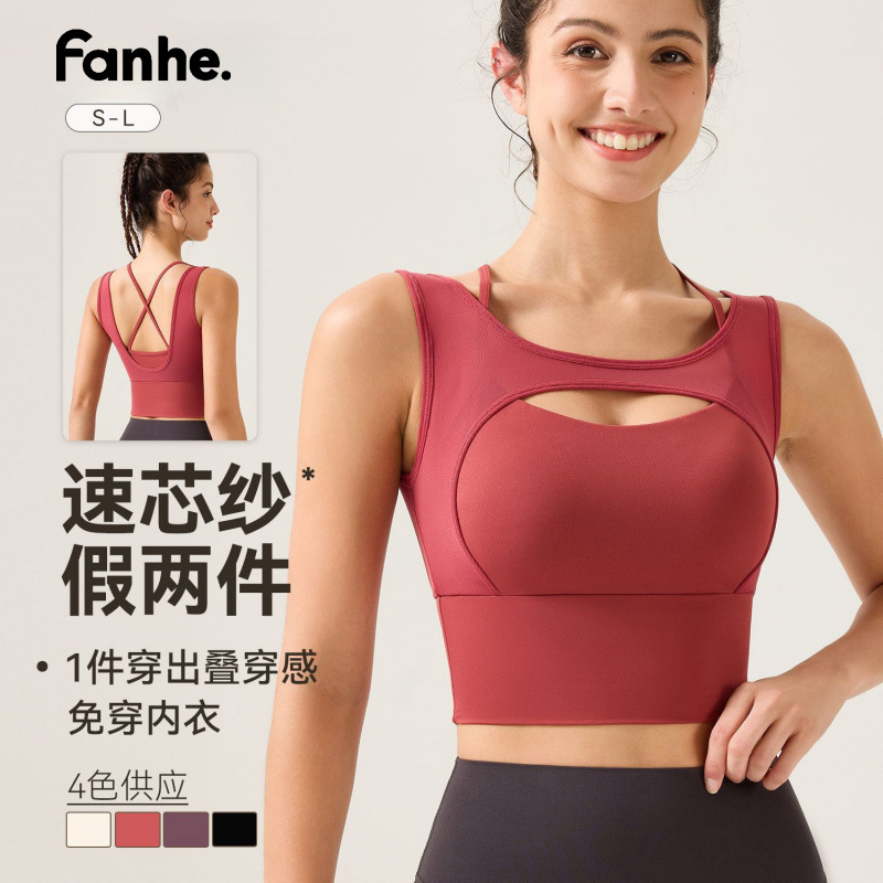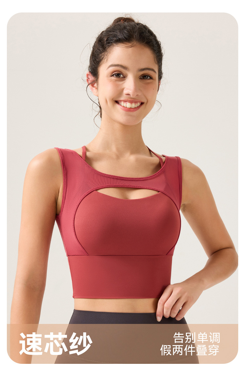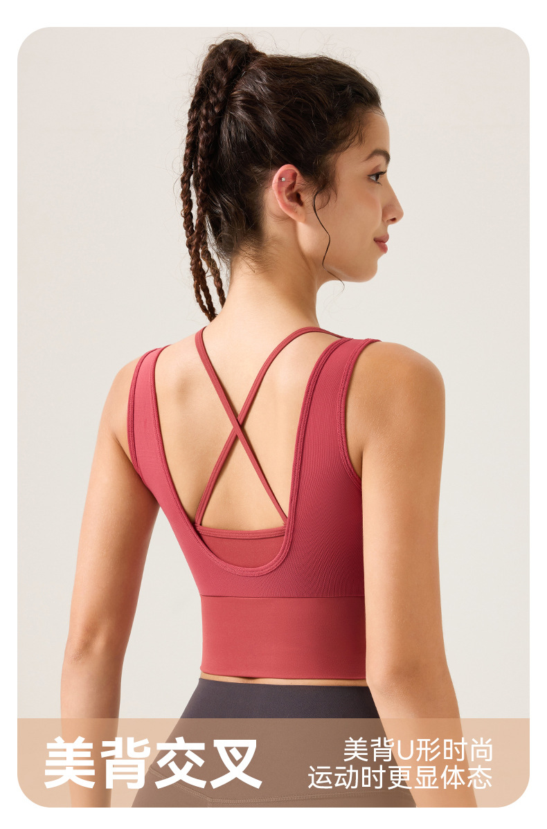 새로운 디자인의 딥 V 네크라인 누드 느낌 스포츠 브라, 봄철 메쉬 소재, 섹시한 얇은 스트랩, 크로스백 디자인, 충격 방지, 푸쉬업 기능을 갖춘 여성용 스포츠 브라스토어 가기