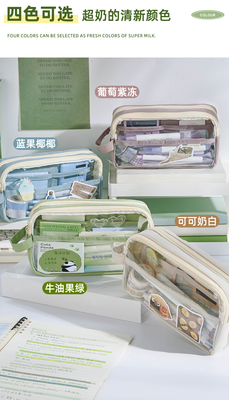 새로운 투명 필통, 인스 스타일 대용량 초등학생 필통, 고급스럽고 심플하며 패셔너블한 연필 케이스