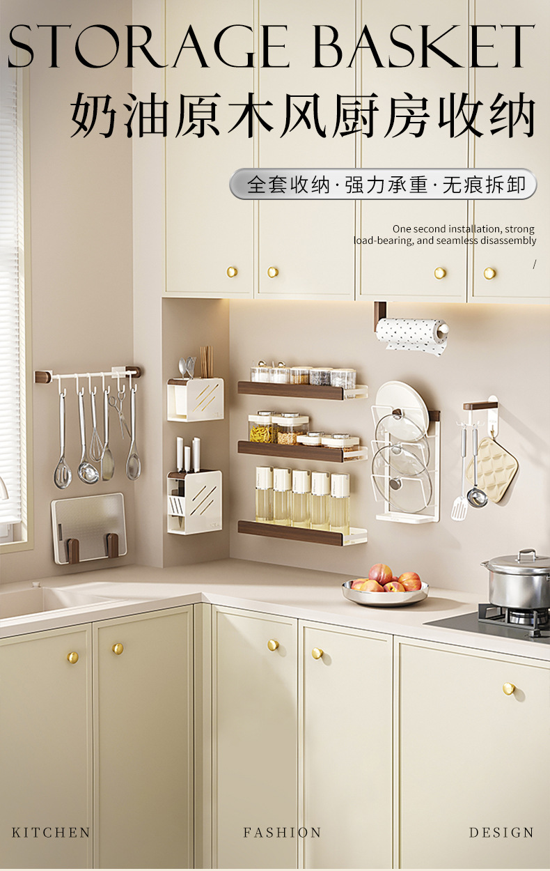 호두나무 수납선반, 벽걸이형, 펀치프리, 가정용 칼걸이, 조미료, 도마, 조미료, 주방 수납선반 풀세트
