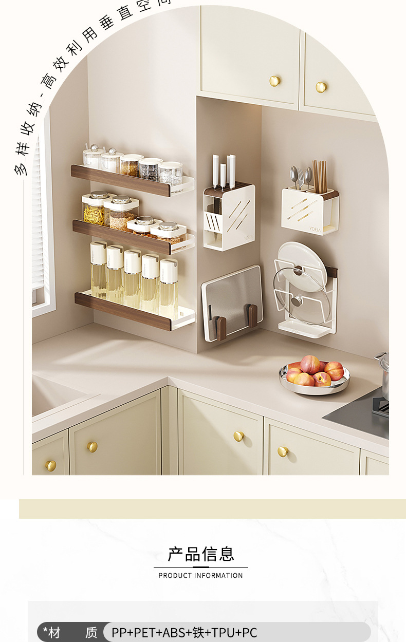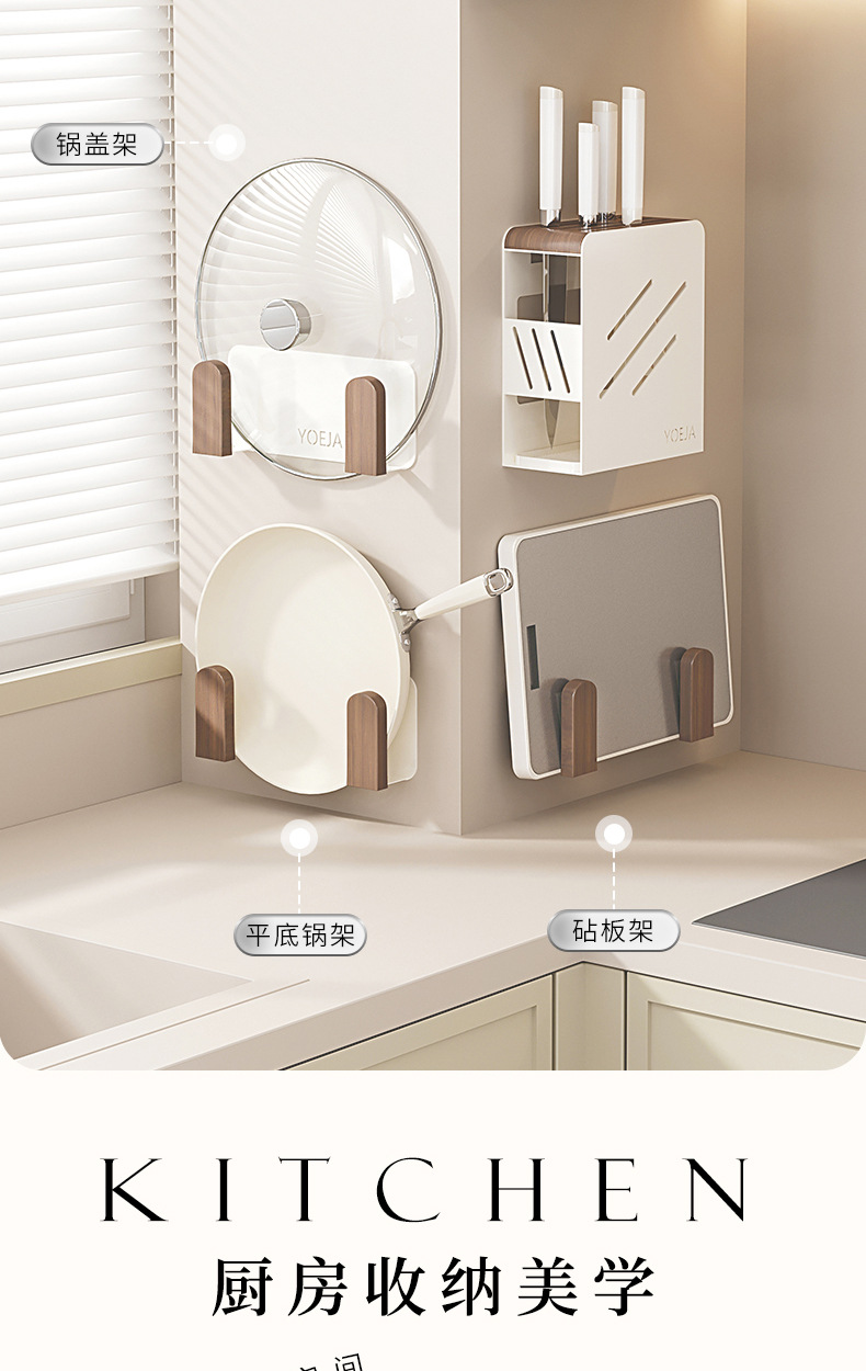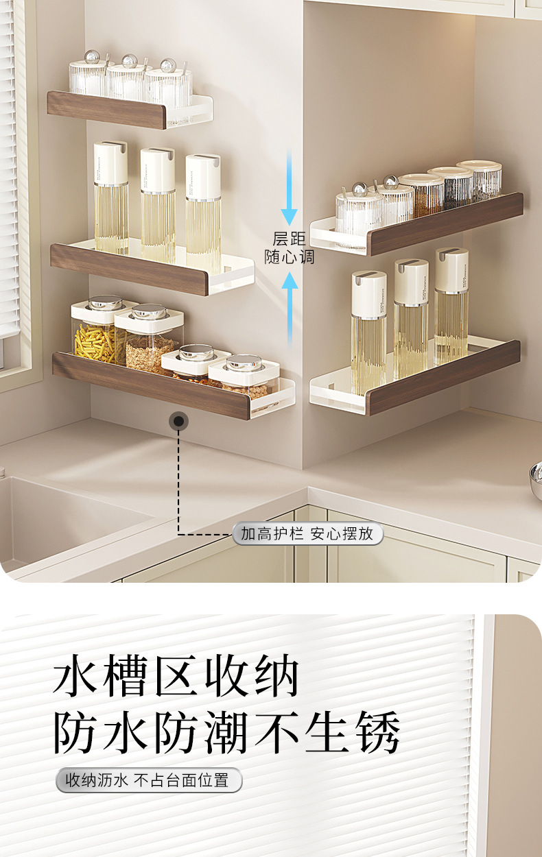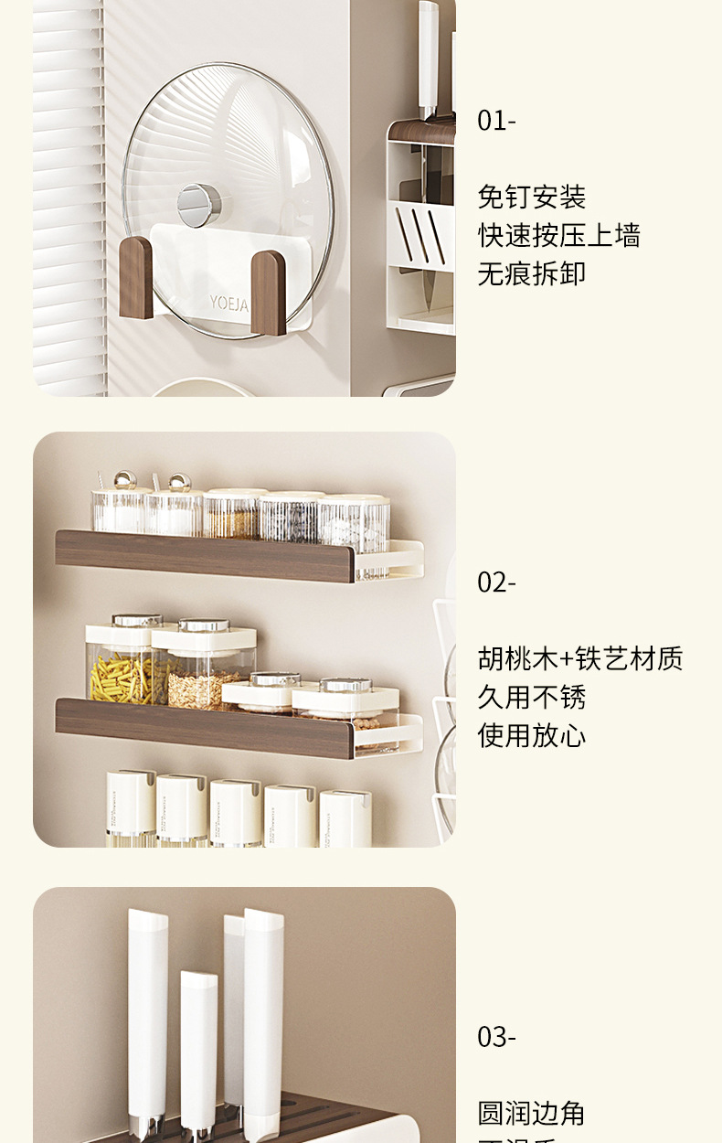 호두나무 수납선반, 벽걸이형, 펀치프리, 가정용 칼걸이, 조미료, 도마, 조미료, 주방 수납선반 풀세트스토어 가기