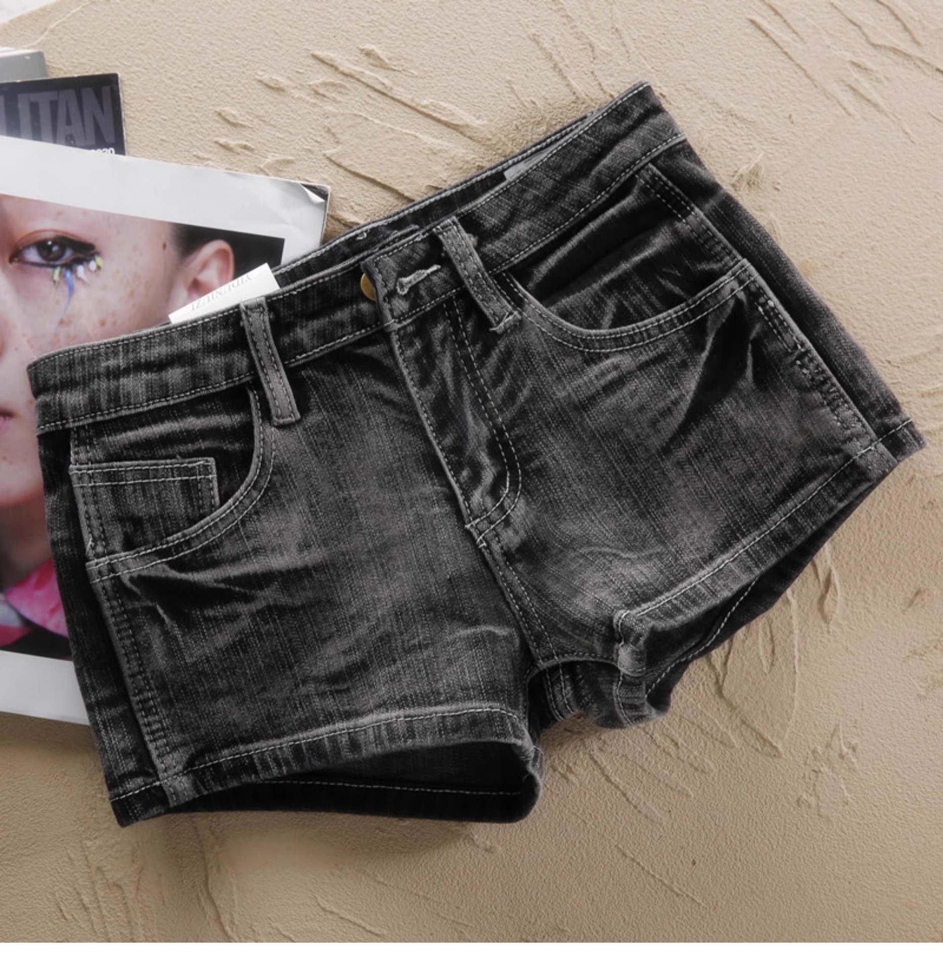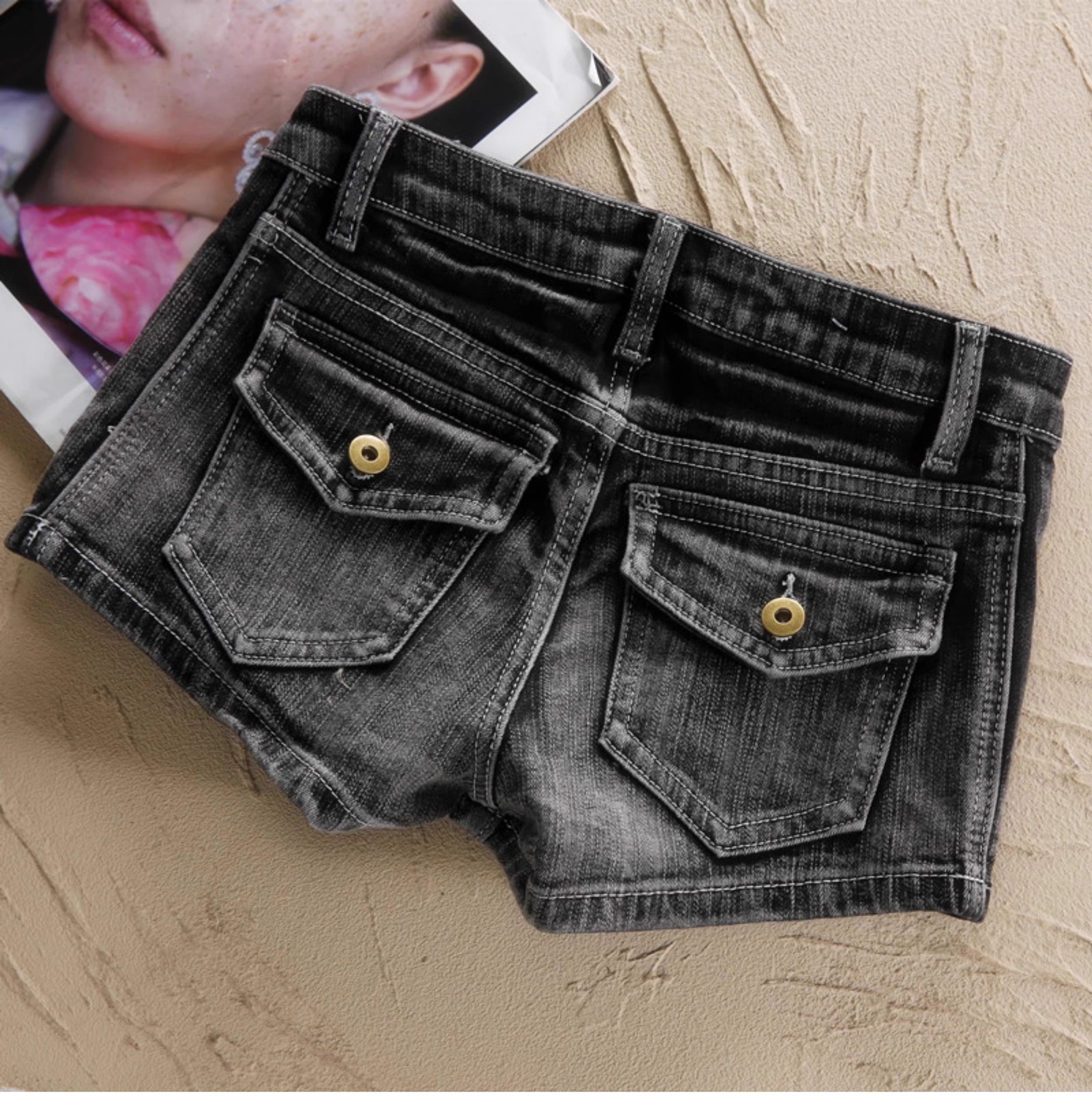 여성용 블랙 그레이 미드 로우 웨이스트 레트로 데님 반바지, 슬림하고 다재다능하며 섹시하고 엉덩이를 덮는 슬리밍 핫 팬츠