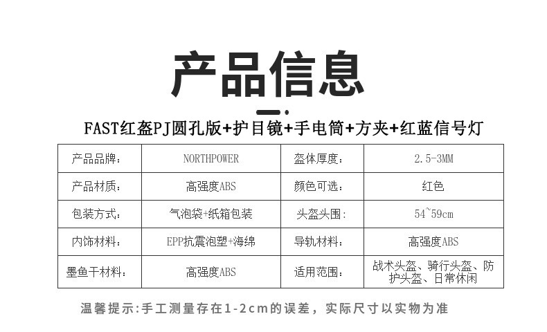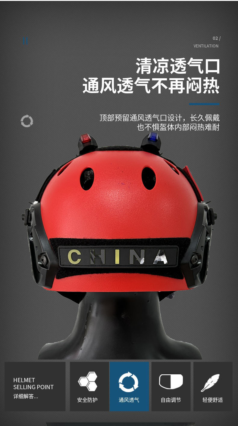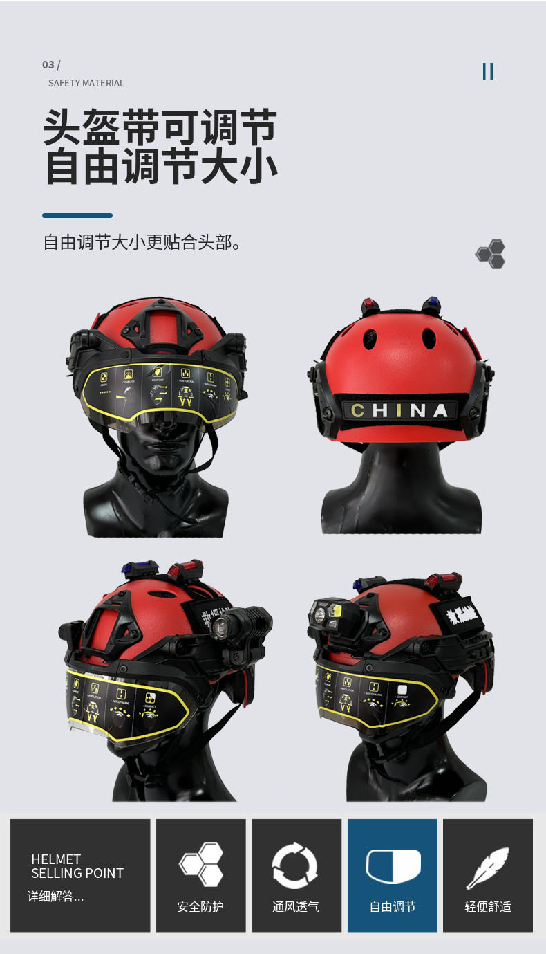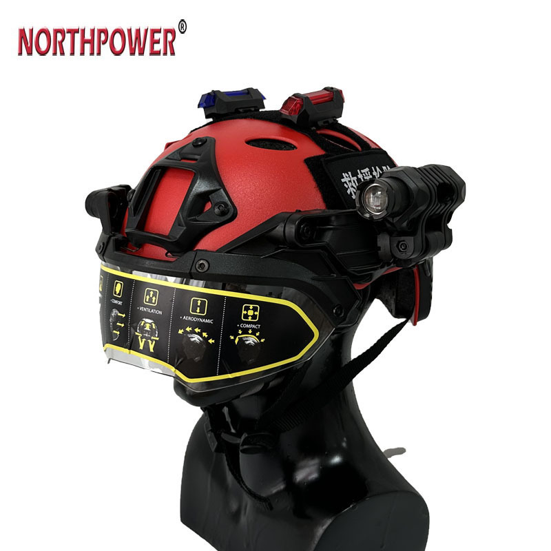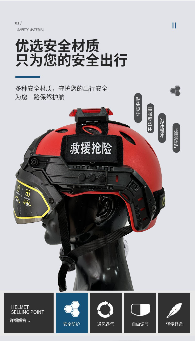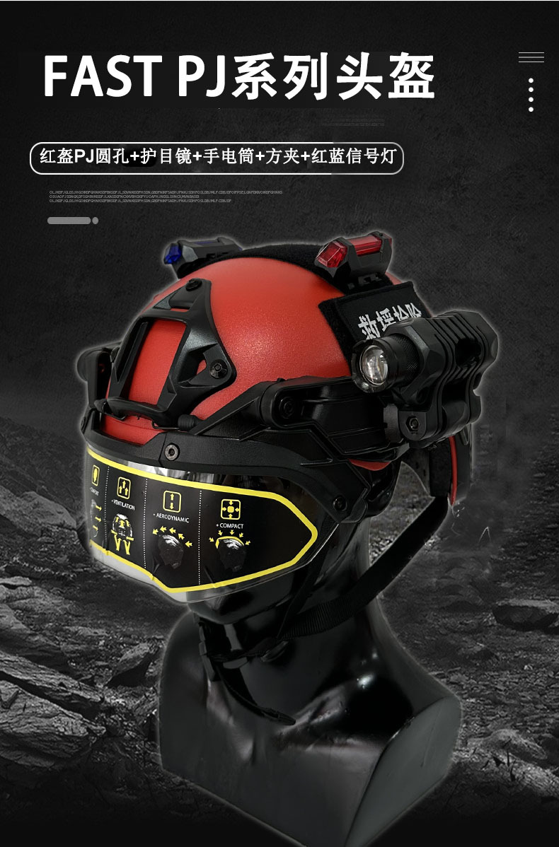 • 빨간 헬멧 pj 둥근 구멍 + 고글 + 손전등 + 사각 클립 + 빨간색과 파란색 신호등