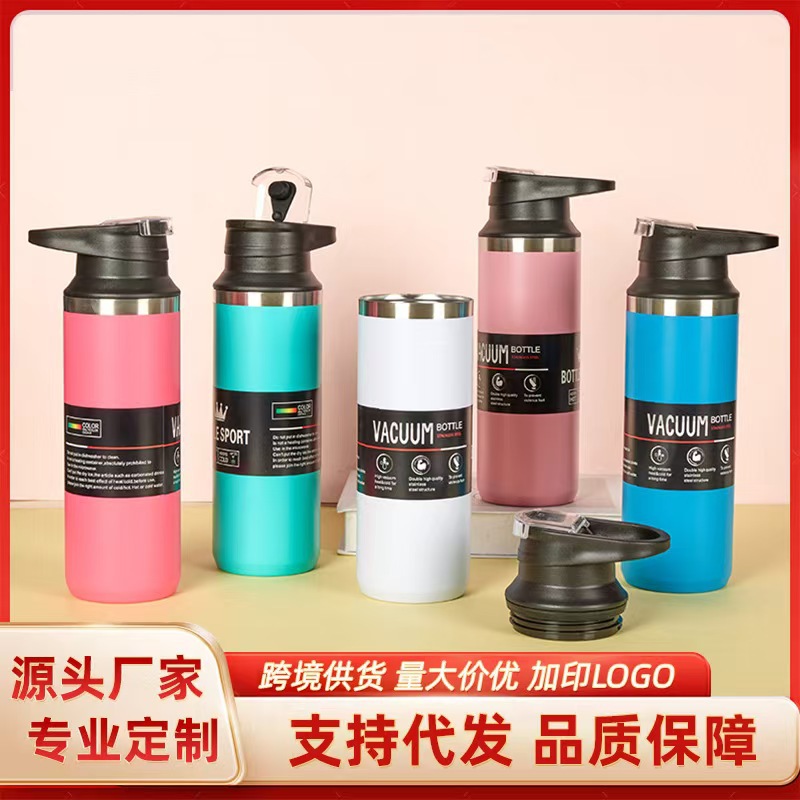 야외 스포츠 대용량 휴대용 등산 주전자 휴대용 푸시식 콜드 컵 크로스보더 304 스테인레스 스틸 보온병 컵