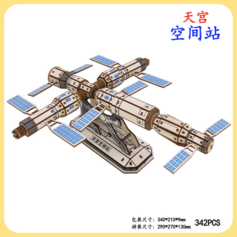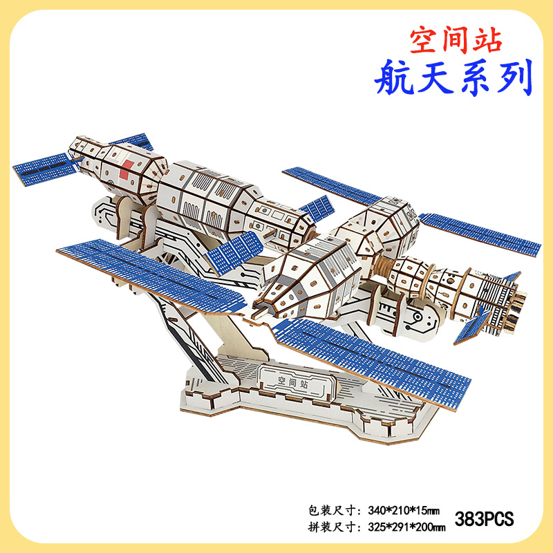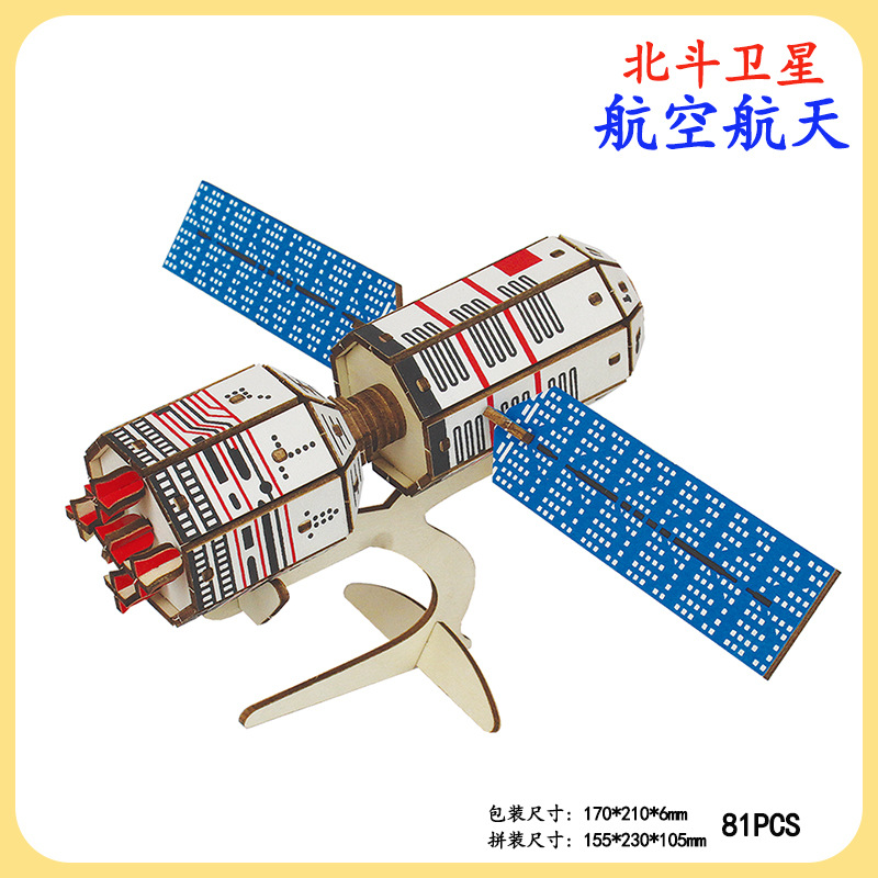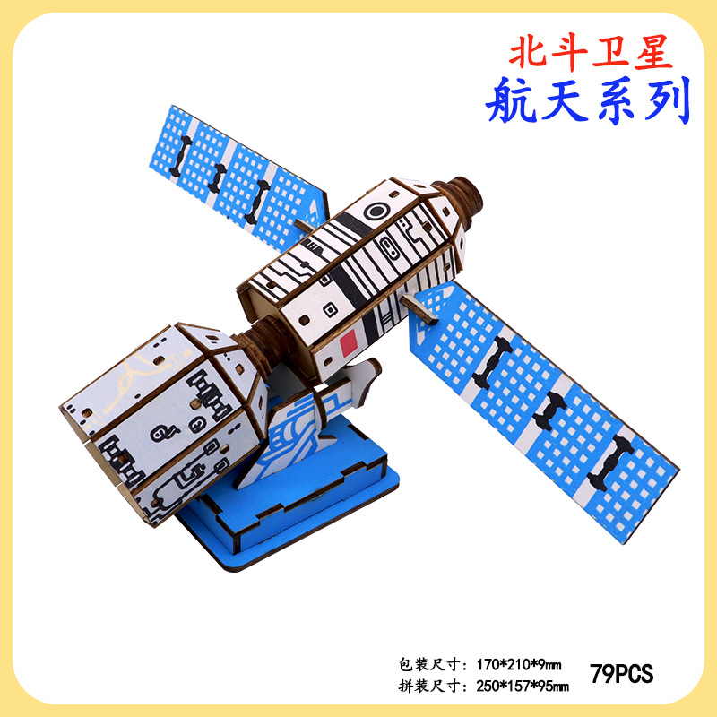 항공 우주 기술 수제 모델 나무 3D 입체 퍼즐 우주 정거장 Beidou 위성 어린이 장난감 도매스토어 가기