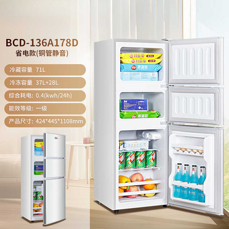 • 3도어 모델 138丨1단계 에너지 효율/소프트 냉동층 해동 없음[동관 냉동/저소음 농축]