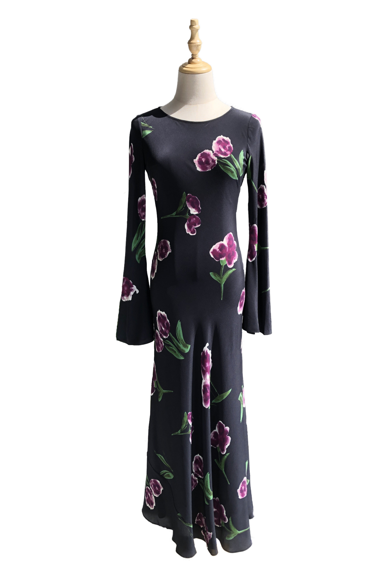 斜裁喇叭袖落地长裙