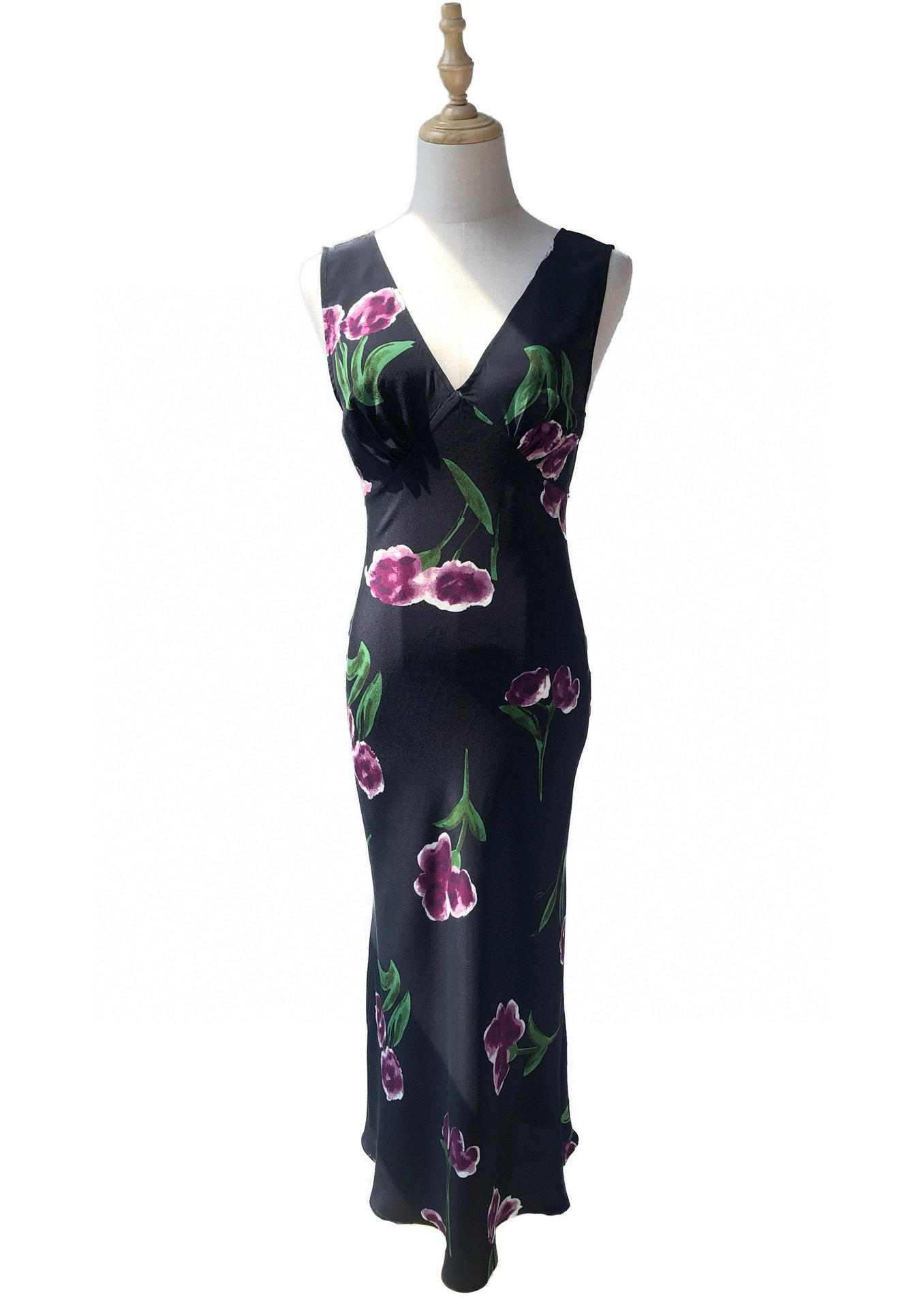 P300,代发散拿310,夜紫郁金香真丝无袖裙